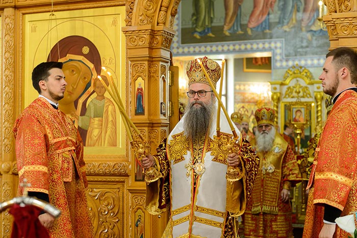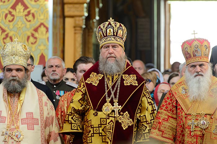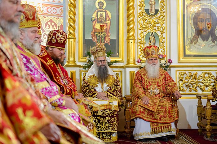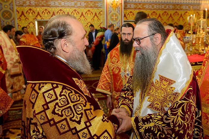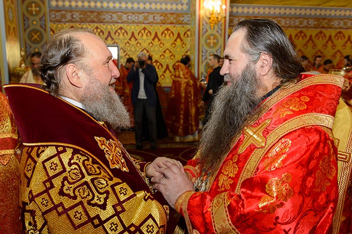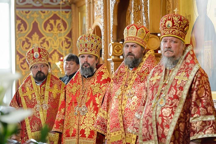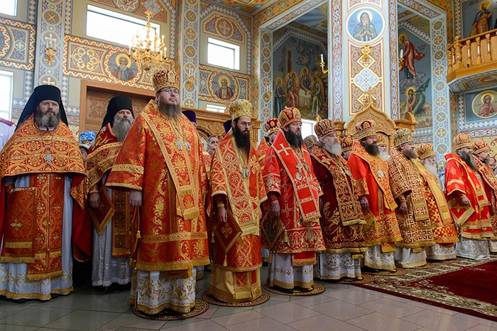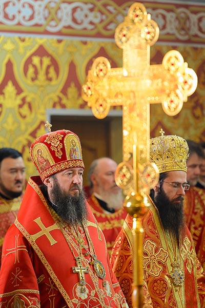 Главе Православной Церкви Казахстана сослужили: Глава Среднеазиатского Митрополичьего округа митрополит Ташкентский и Узбекистанский Викентий, митрополит Тамасосский и Оринийский Исаия (Кипрская Православная Церковь), митрополит Пловдивский Николай (Болгарская Православная Церковь), председатель Синодального миссионерского отдела Русской Православной Церкви митрополит Белгородский и Старооскольский Иоанн, председатель Синодального миссионерского отдела Украинской Православной Церкви митрополит Полтавский и Миргородский Филипп, глава Нижегородской митрополии митрополит Нижегородский и Арзамасский Георгий, глава Костромской митрополии митрополит Костромской и Нерехтский Ферапонт, архиепископ Уральский и Актюбинский Антоний, архиепископ Чимкентский и Таразский Елевферий, архиепископ Магаданский и Синегорский Иоанн, епископ Костанайский и Рудненский Анатолий, епископ Талдыкорганский Нектарий, Управляющий делами Православной Церкви Казахстана епископ Каскеленский Геннадий, епископ Павлодарский и Экибастузский Варнава, епископ Карагандинский и Шахтинский Севастиан, епископ Усть-Каменогорский и Семипалатинский Амфилохий, епископ Кокшетауский и Акмолинский Серапион, викарий Пловдивской епархии епископ Знепольский Арсений (Болгарская Православная Церковь), епископ Саянский и Нижнеудинский Алексий, епископ Петропавловский и Булаевский Владимир, епископ Галичский и Макарьевский Алексий.