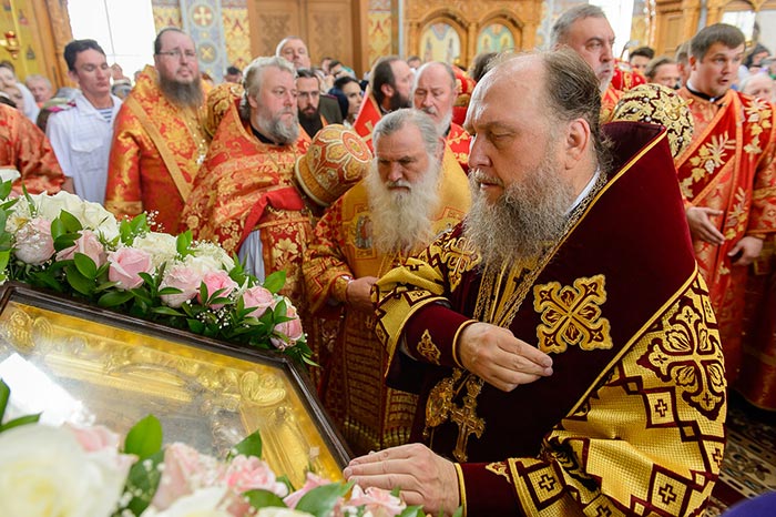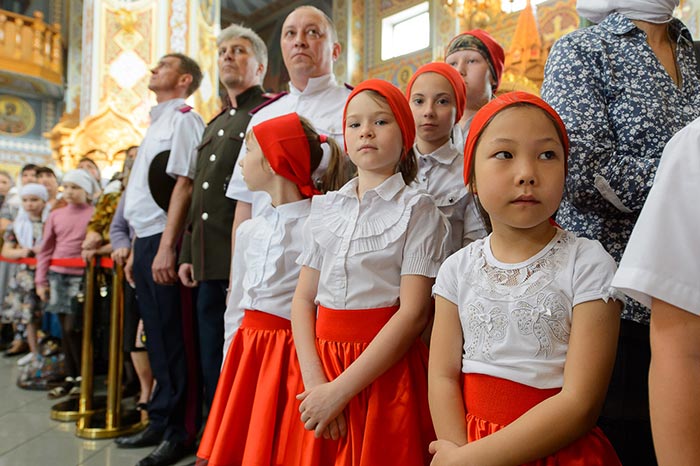На протяжении всего дня в Софийском соборе совершалось молитвенное поклонение перед иконой Царицы Небесной «Умягчение злых сердец». Почтить мироточивую святыню прибыли несколько тысяч паломников из населенных пунктов Алма-Атинской области и Кыргызстана.