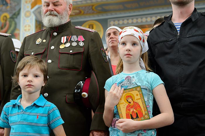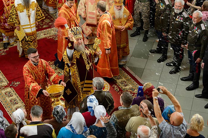Охрану и порядок в Софийском соборе и на территории монастыря обеспечивали казаки Союза казаков Семиречья во главе с атаманом В.С. Шихотовым.