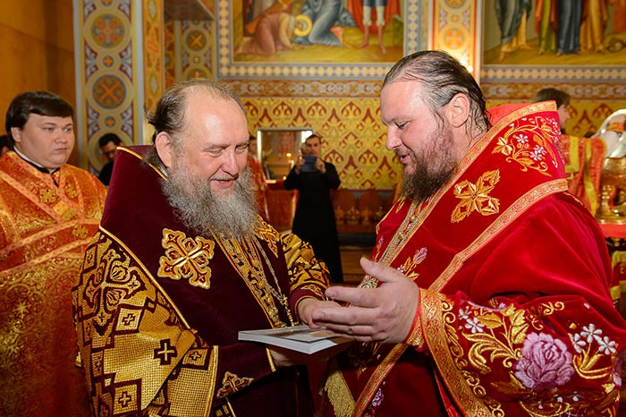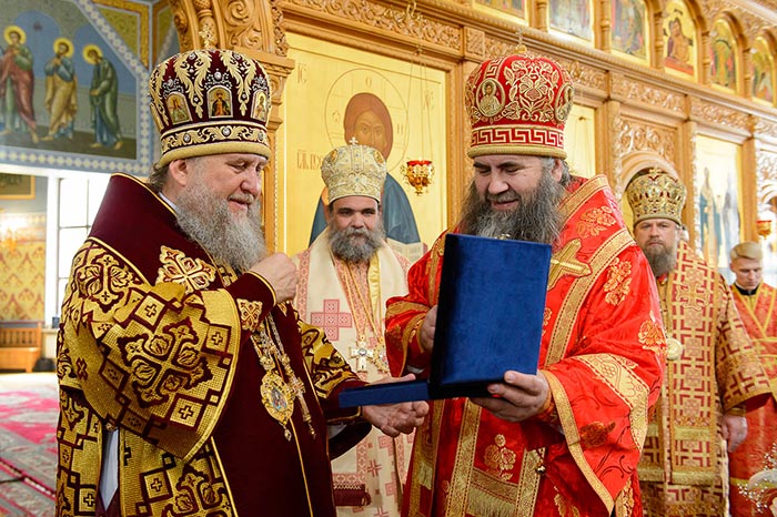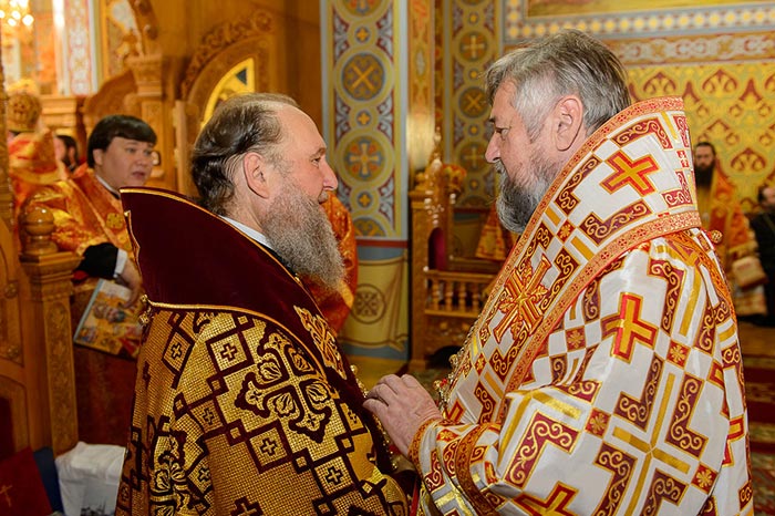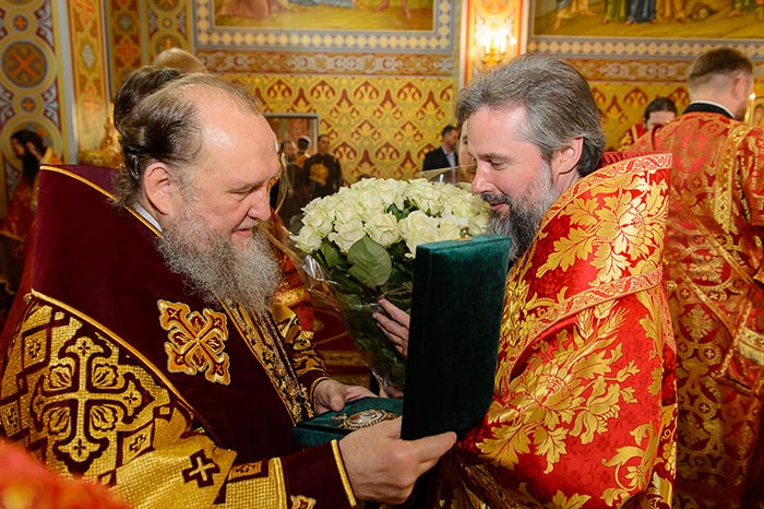 От епископата, участвующего в торжествах, Главу Казахстанского Митрополичьего округа со 145-летием Туркестанской епархии и с 60-летием со дня рождения поздравил Управляющий делами Православной Церкви Казахстана епископ Каскеленский Геннадий.