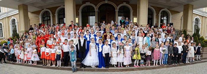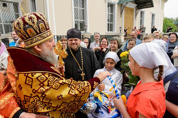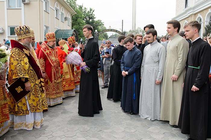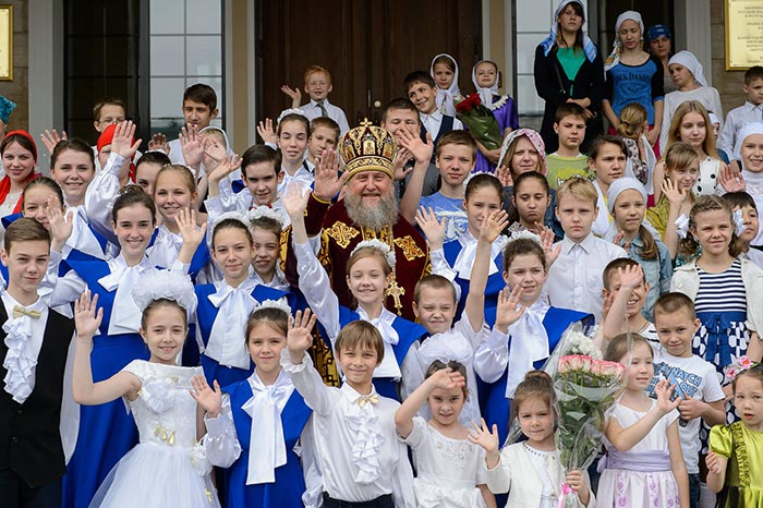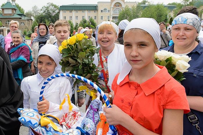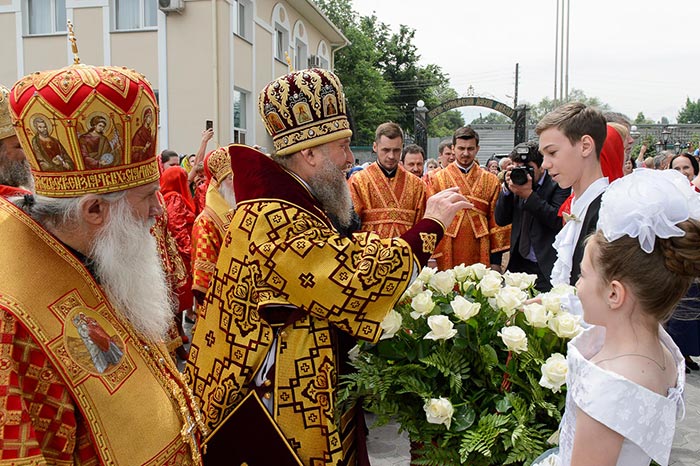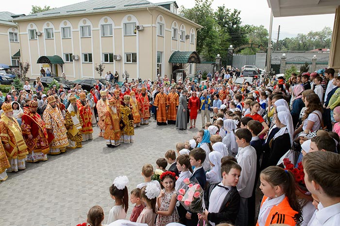 На площади перед духовно-культурным центром имени митрополита Иосифа (Чернова) митрополита Александра, иерархов, пастырей и мирян с праздником поздравили учащиеся воскресных школ города Алма-Аты во главе с директором Центральной воскресной школы Г.В. Черепановой, и студенты Алма-Атинской православной духовной семинарии.