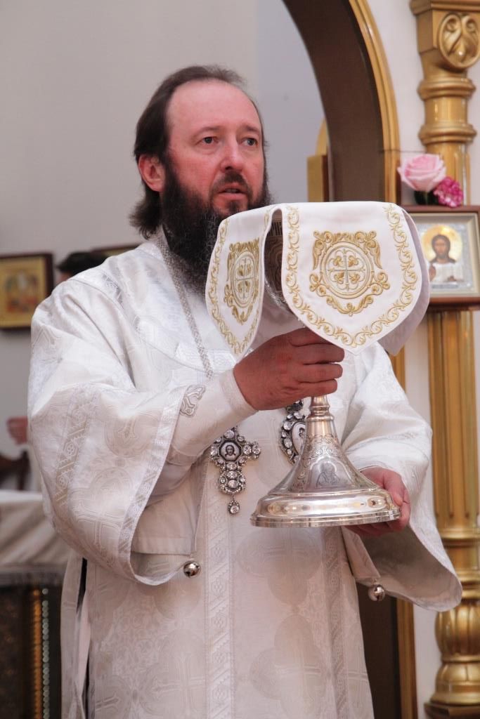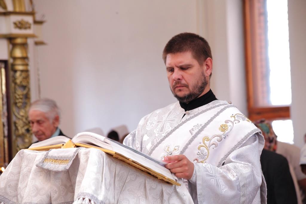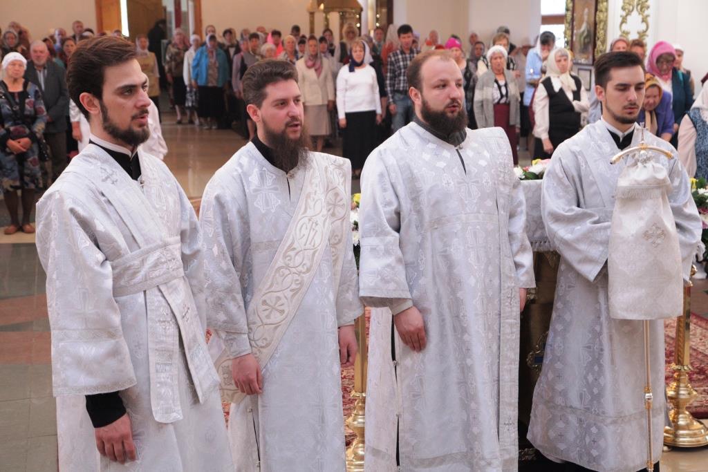 Перед причастием проповедовал ключарь кафедрального собора. Торжественное богослужение завершилось славлением Господу Иисусу, после чего епископ Амфилохий обратился к молящимся со словами проповеди.