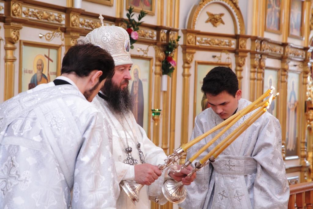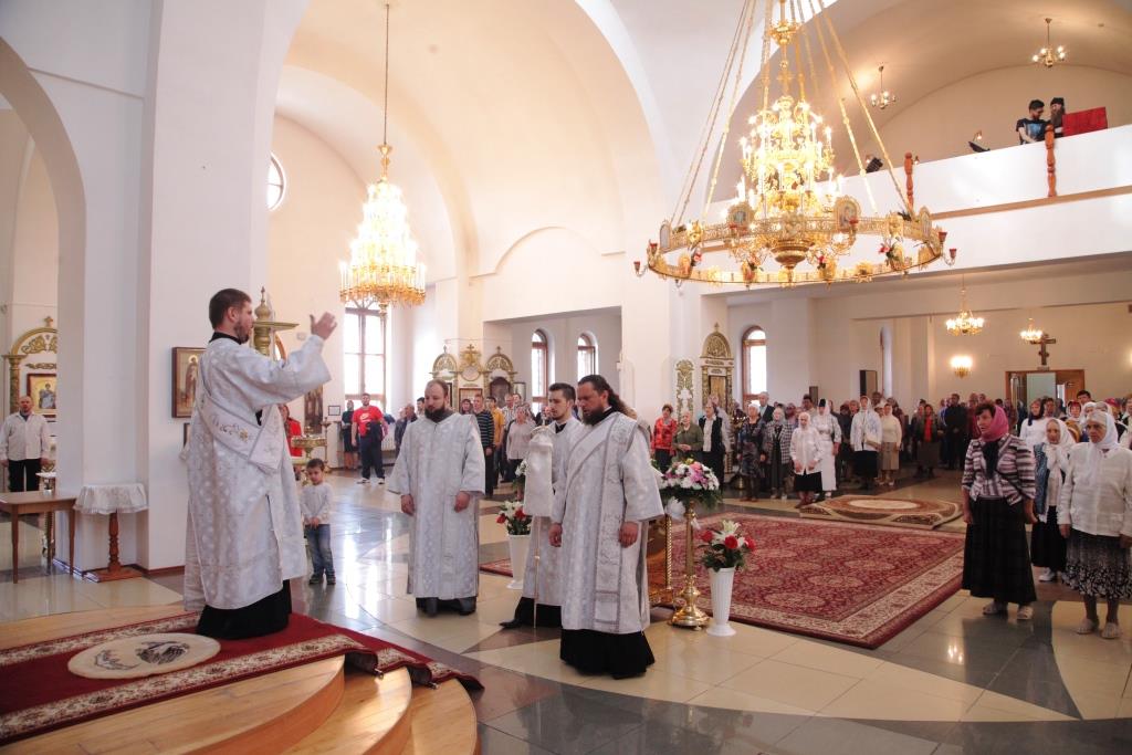 В праздничный день Вознесения Господня Преосвященнейший епископ Усть-Каменогорский и Семипалатинский Амфилохий возглавил служение Божественной Литургии святителя Иоанна Златоуста в кафедральном соборе во имя святого апостола Андрея Первозванного города Усть-Каменогорска. Владыке сослужили: духовник епархии архимандрит Спиридон (Теплухин), ключарь кафедрального собора иеромонах Никодим (Авдеев), клирики собора иерей Алексий Клепиков и иеромонах Севастиан (Андрющенко), протодиаконы Георгий Засыпкин и Андрей Дудник, иеродиакон Мефодий (Шевчук), диакон Алексий Горбунов.