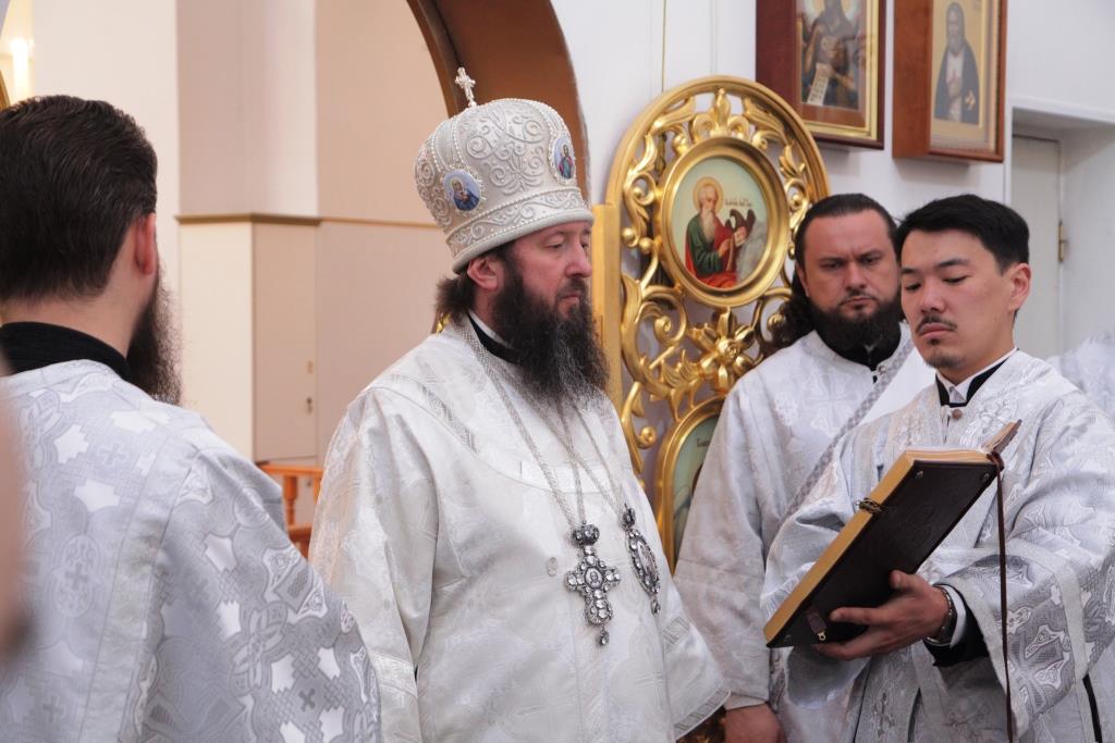 После проповеди Преосвященнейший Архипастырь призвал Божие благословение на молящихся и пожелал всем собравшимся крепости духовных и телесных сил.