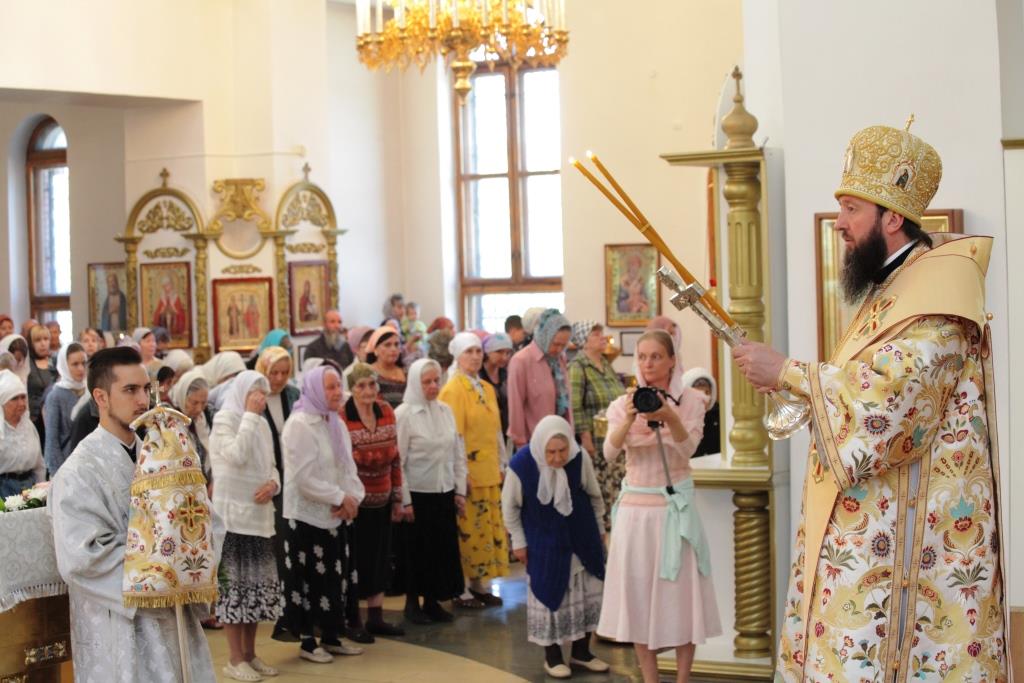 На воскресном богослужении молились прихожане и паломники главного храма епархии, насельники Свято-Троицкого мужского монастыря, сотрудники епархиального управления. Песнопения Божественной Литургии исполнял хор кафедрального собора под управлением регента Андрея Мельникова. Перед причастием мирян проповедовал священник Константин Дьяков.