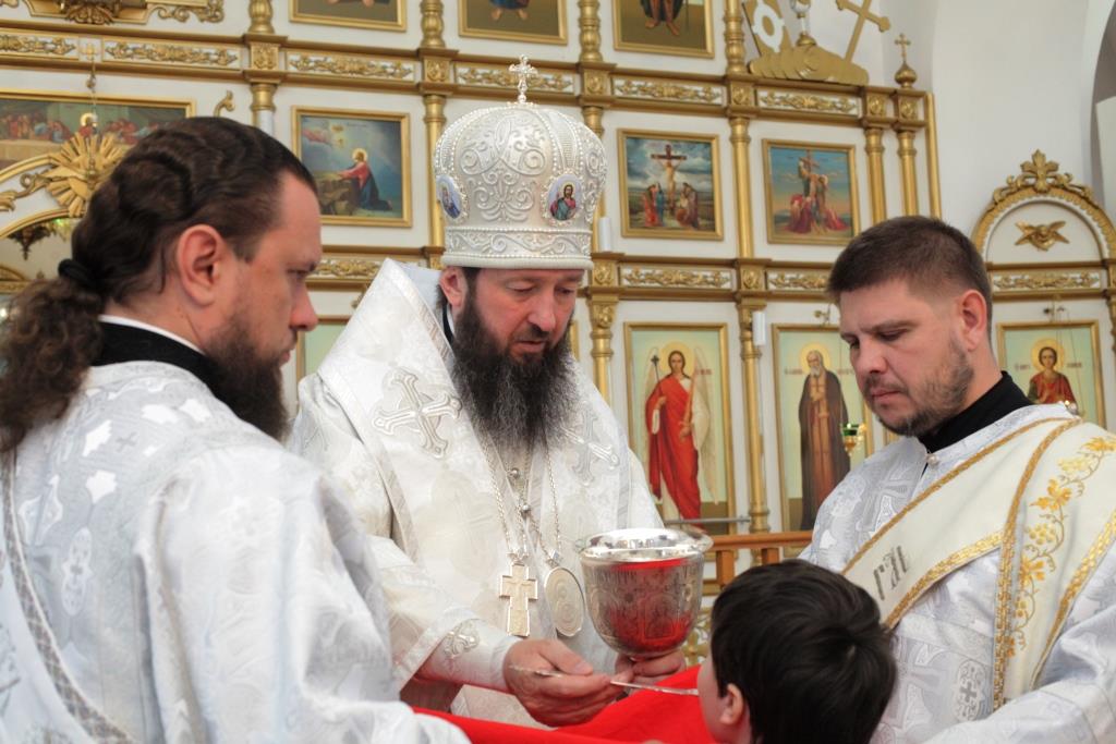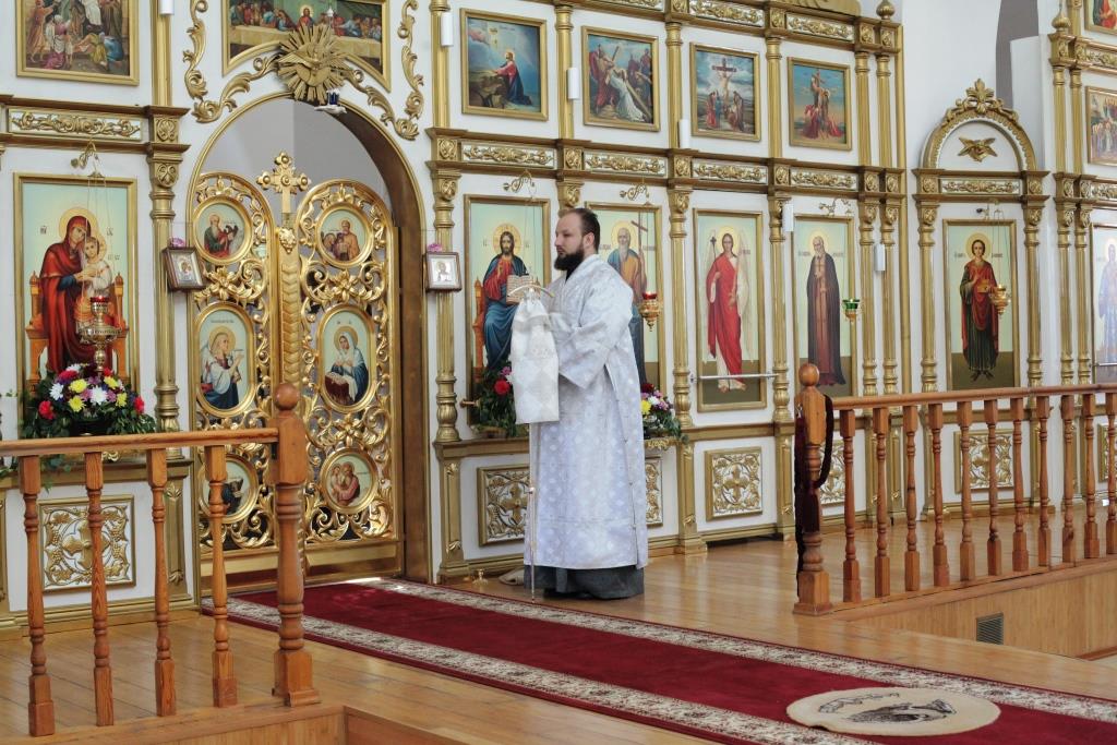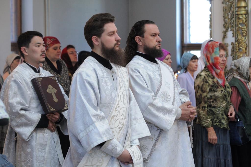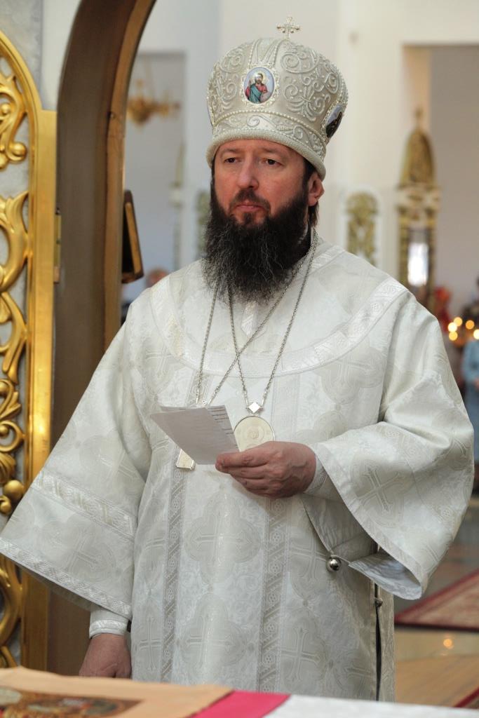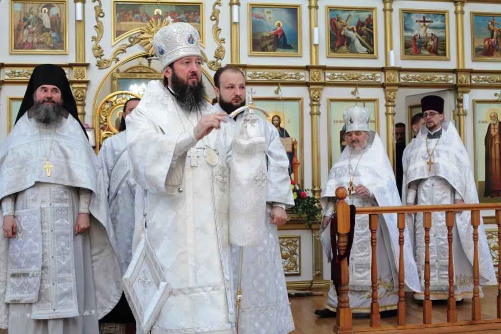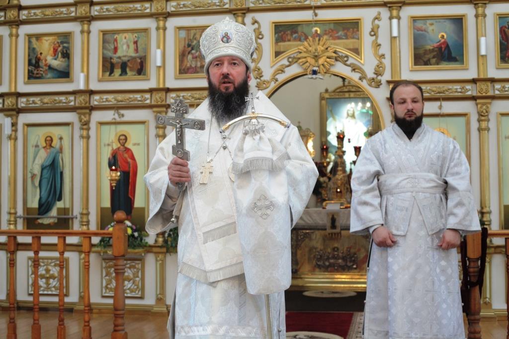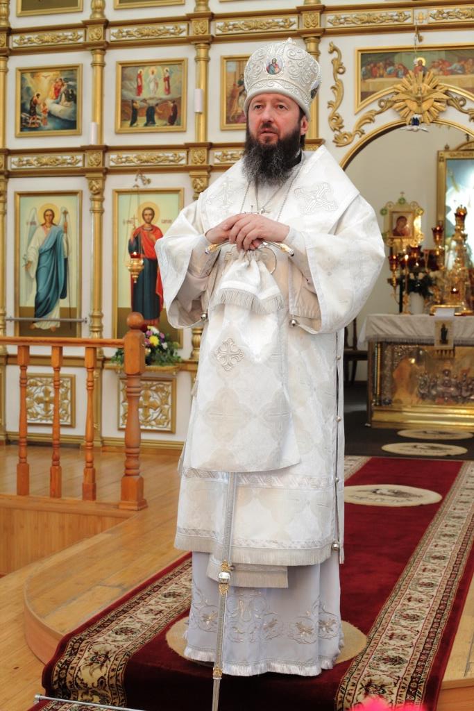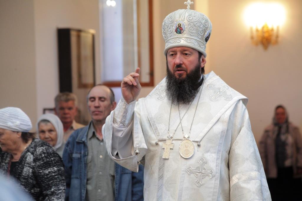 Перед причастием мирян проповедовал священник Константин Дьяков. В завершение Литургии Преосвященнейший Архипастырь обратился к духовенству и народу Божиему со словами проповеди.