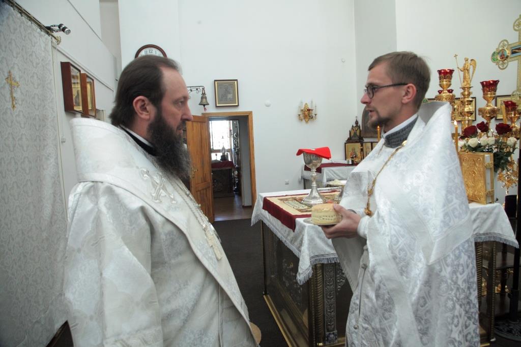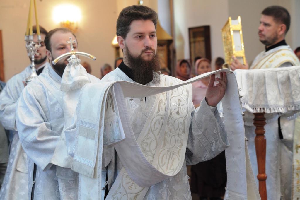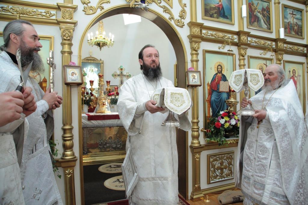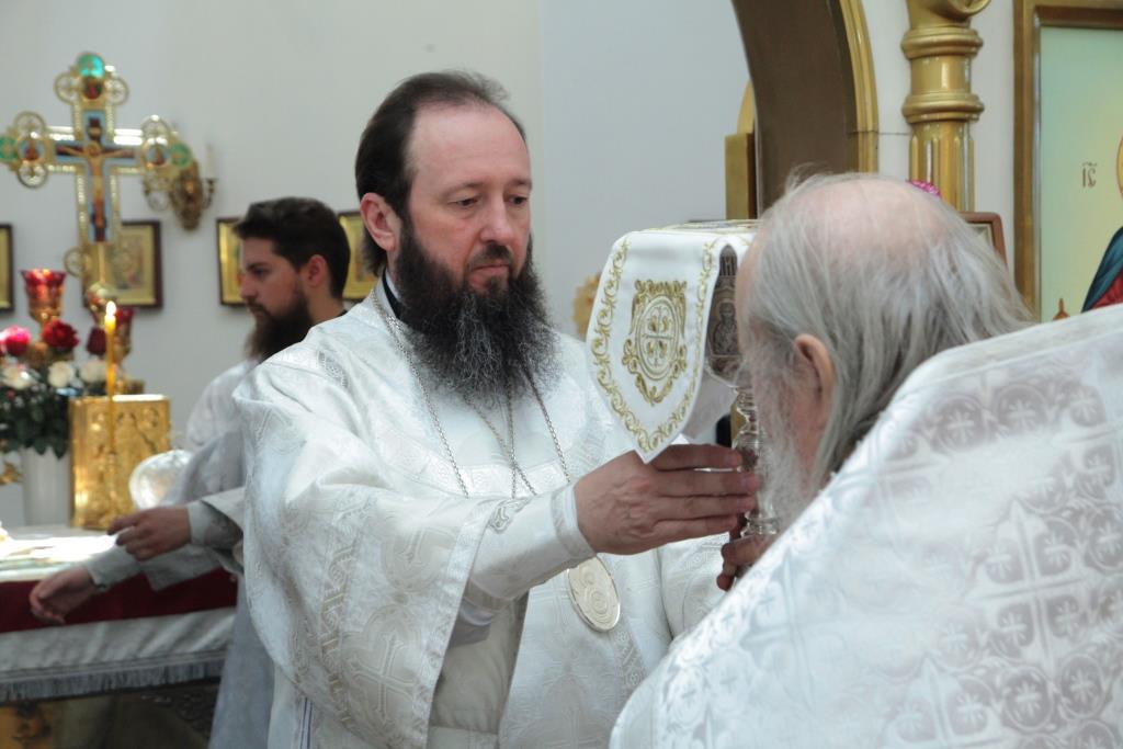 За богослужением епископ Амфилохий поздравил иерея Константина Дьякова с днем Тезоименитства.