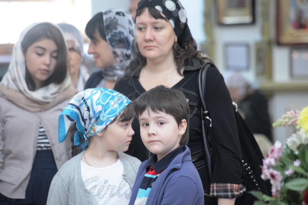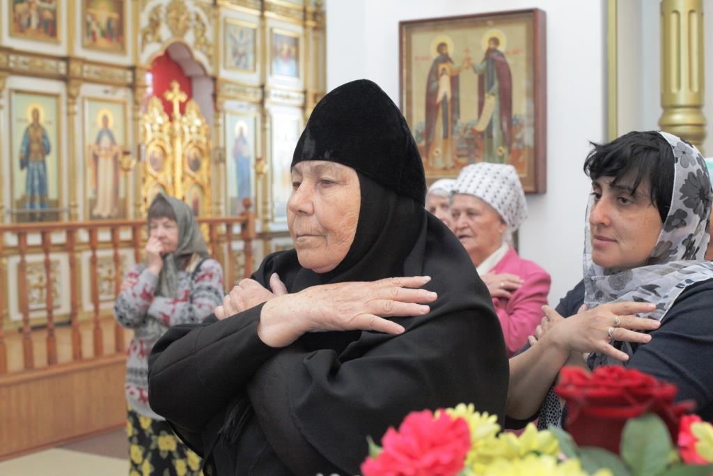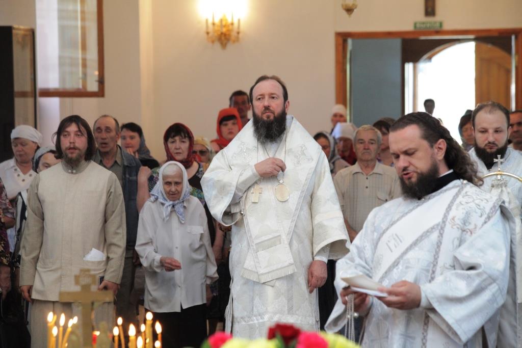 За богослужением молились насельники Свято-Троицкой обители, сотрудники епархиальных отделов, прихожане кафедрального собора. Песнопения Троицкой родительской субботы исполнял хор Андреевского собора под управлением регента А. Мельникова.
