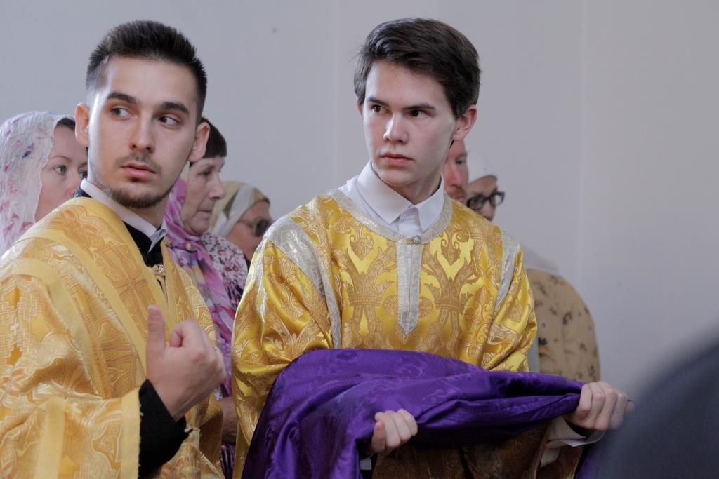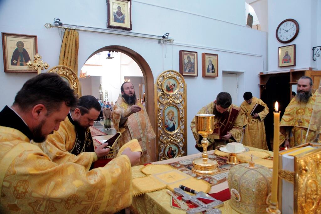 Архипастырю сослужили: духовник епархии архимандрит Спиридон (Теплухин), ключарь кафедрального собора иеромонах Никодим (Авдеев), клирик собора иерей Алексий Клепиков, протодиакон Андрей Дудник, иеродиакон Мефодий (Шевчук), диакон Алексий Горбунов, диакон Владимир Лаврешин.