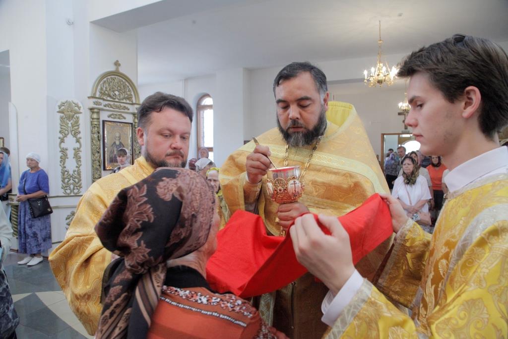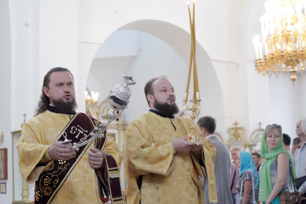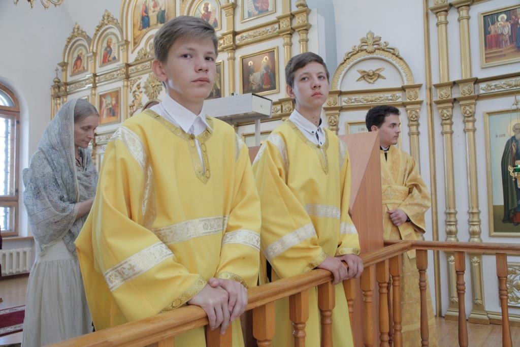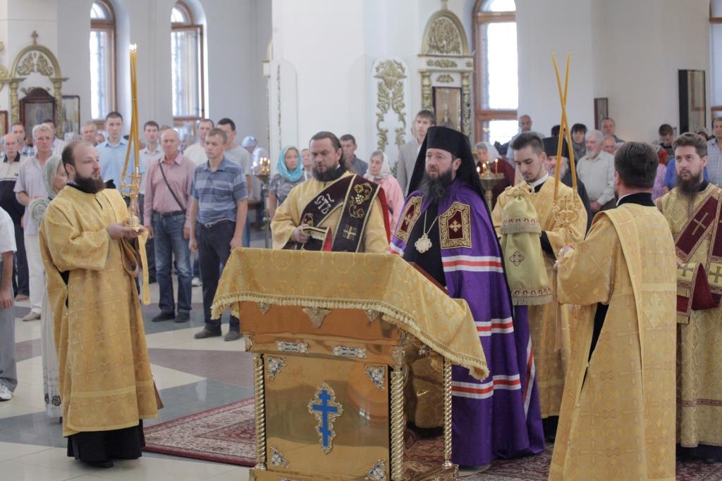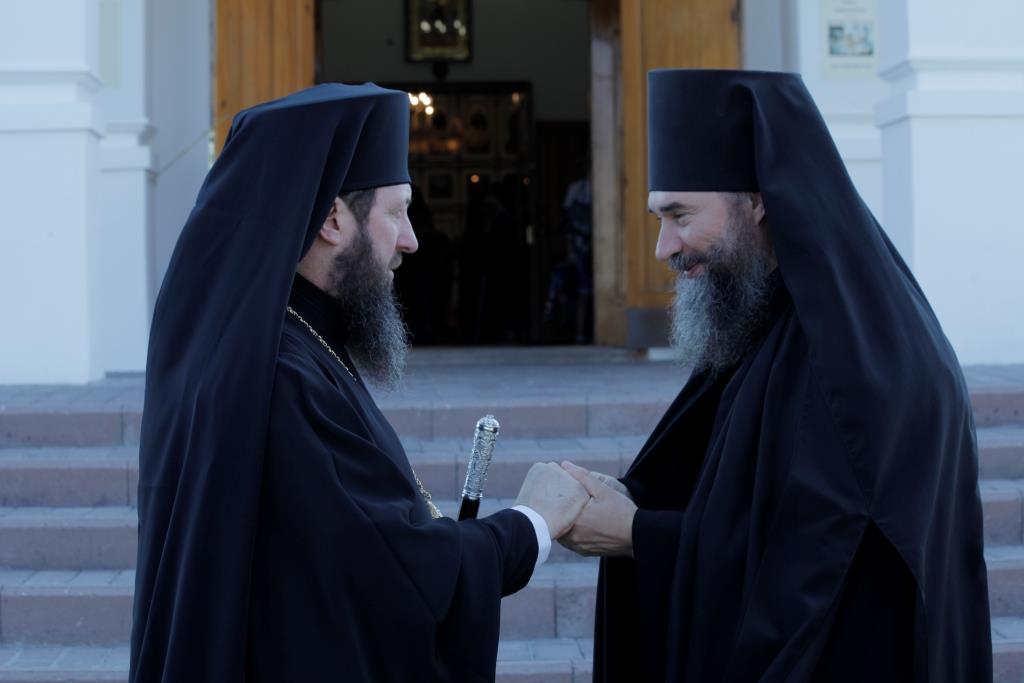 Его Преосвященству сослужили: духовник Усть-Каменогорской епархии, архимандрит Спиридон (Теплухин); ключарь Андреевского кафедрального собора, иеромонах Никодим (Авдеев); иермонах Севастиан (Анрющенко); диаконский чин возглавил протодиакон Андрей Дудник.