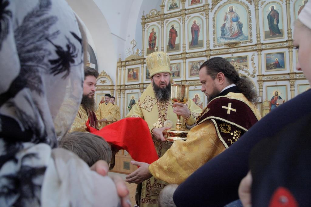 После причащения мирян Преосвященный Владыка обратился к верным чадам Христовым со словом назидания:
