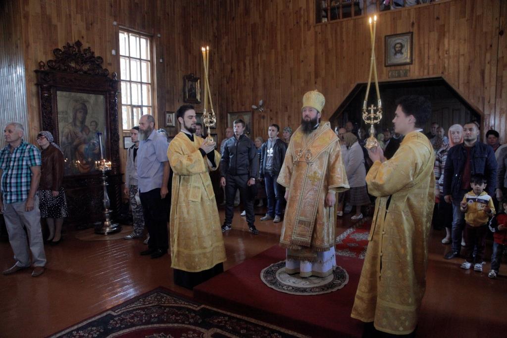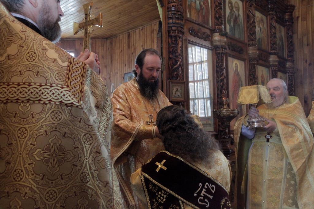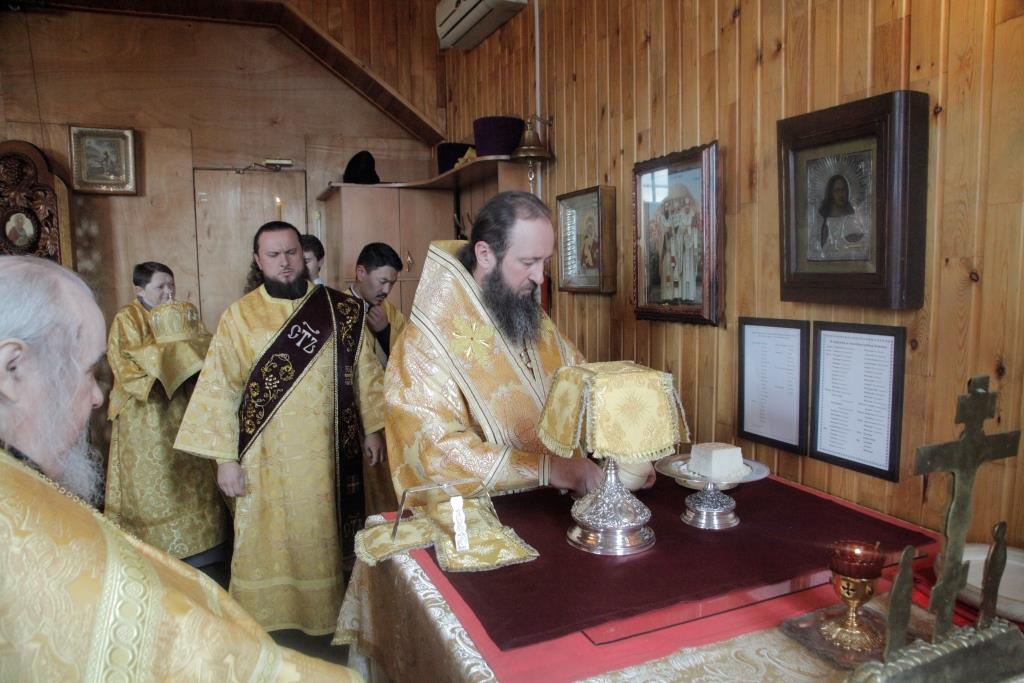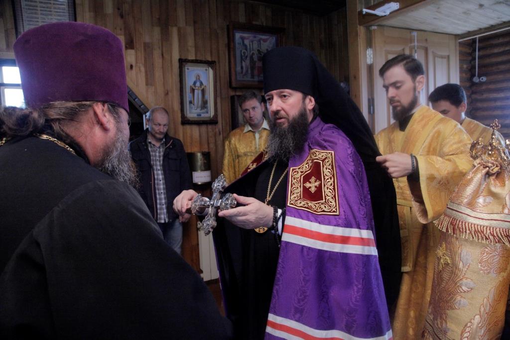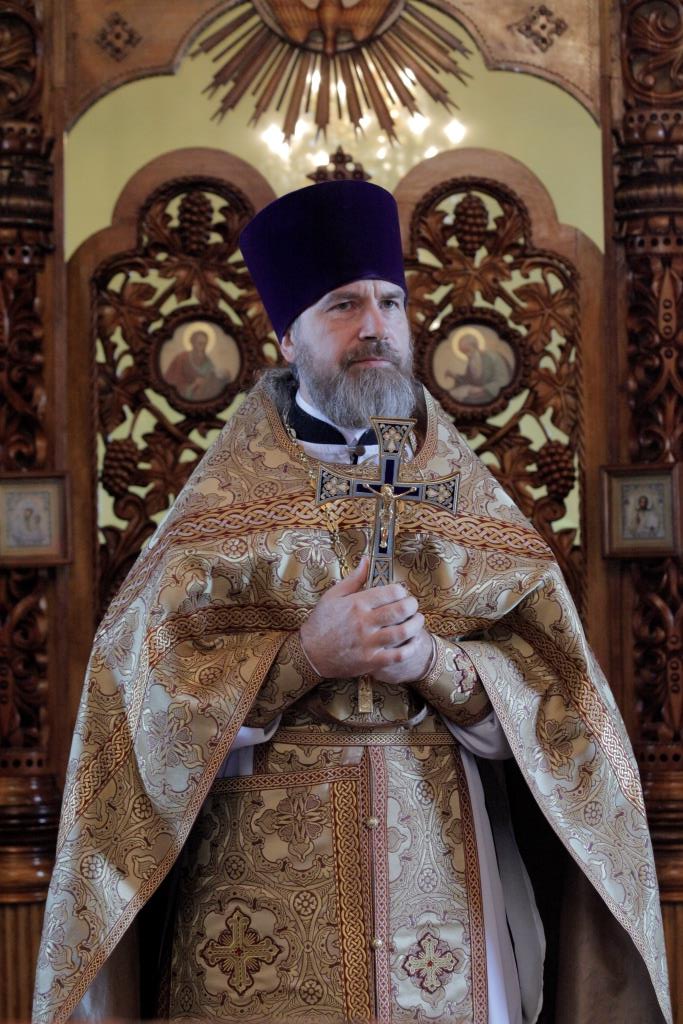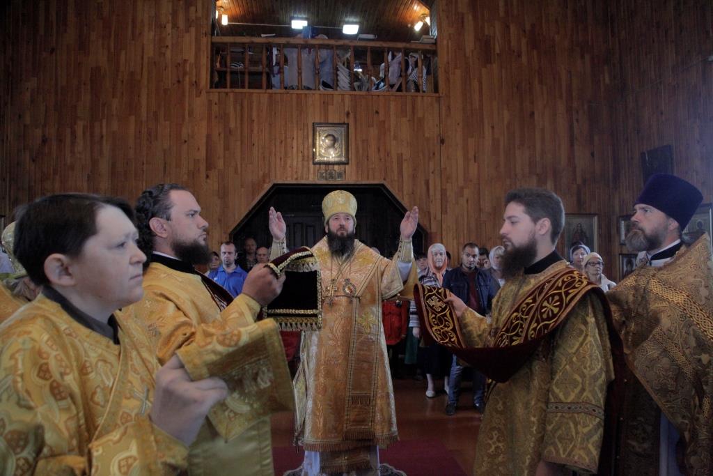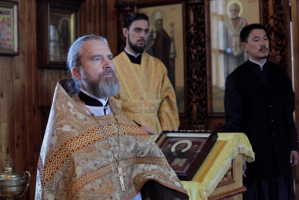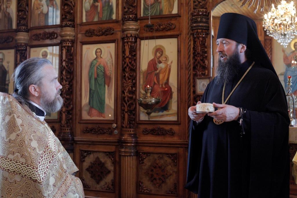 После богослужения Преосвященнейший Владыка поздравил настоятеля храма иерея Алексия Анищенко с 45-летием со дня рождения и преподнес ему в дар серебряный наперсный крест. От лица духовенства Усть-Каменогорского благочиния ключарь Андреевского собора иеромонах Никодим (Авдеев) подарил отцу Алексию иерейское облачение. Воскресное Богослужение завершилось братской трапезой.