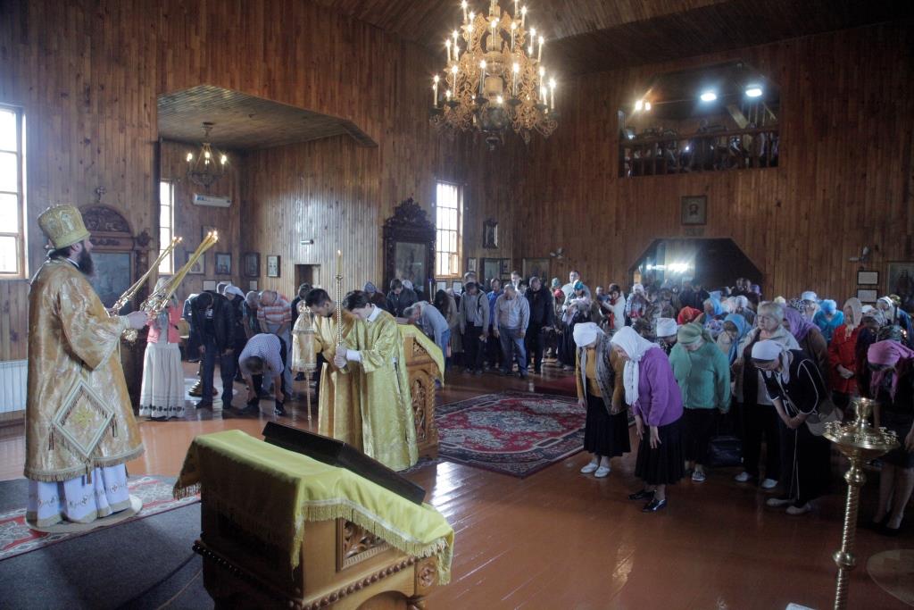 Песнопения Божественной Литургии исполнял хор Покровского храма под управлением регента А. Король. За воскресным богослужением молились прихожане Покровского храма, паломники и городских храмов и окрестных населенных пунктов. Перед причастием мирян проповедовал иерей Алексий Анищенко.
