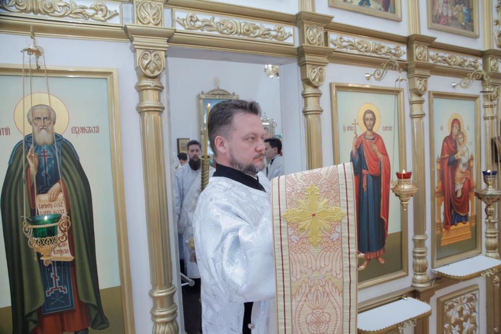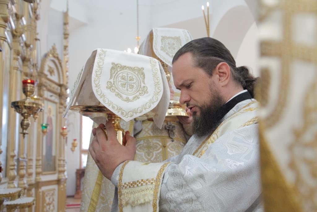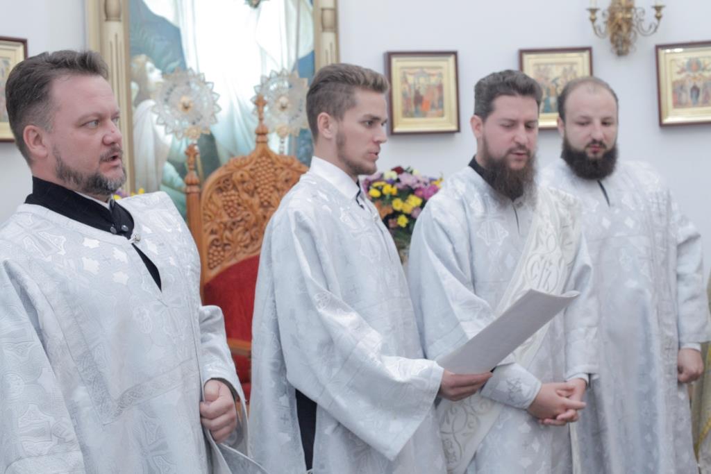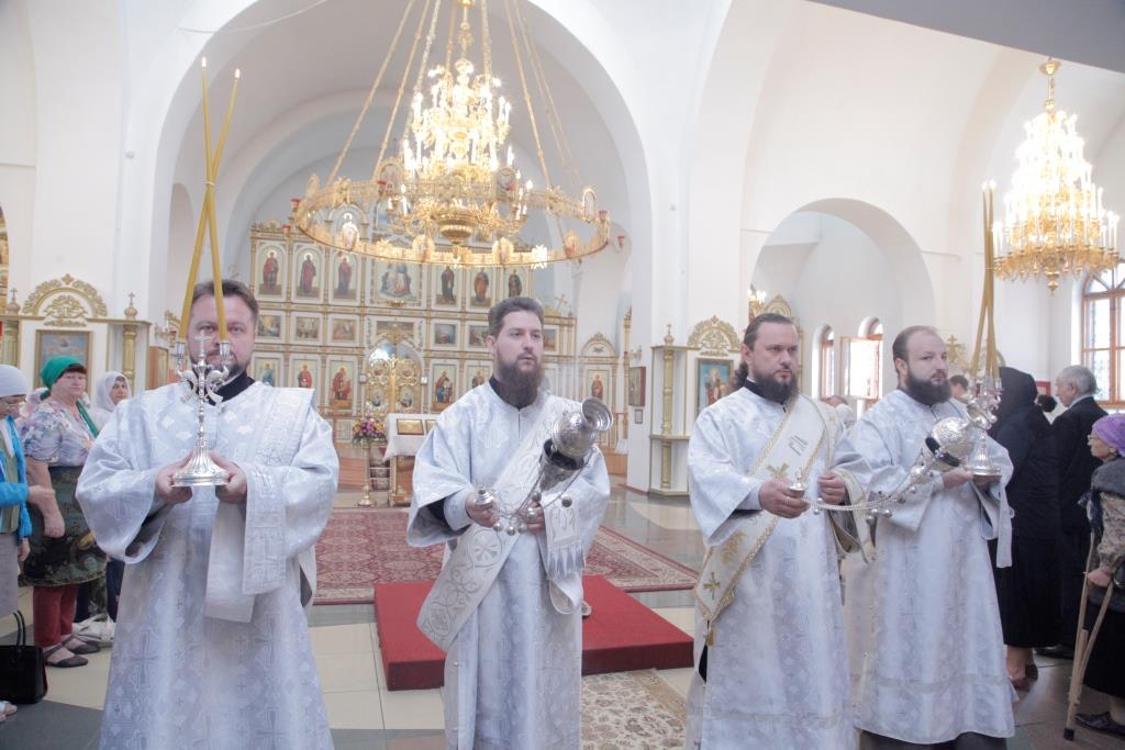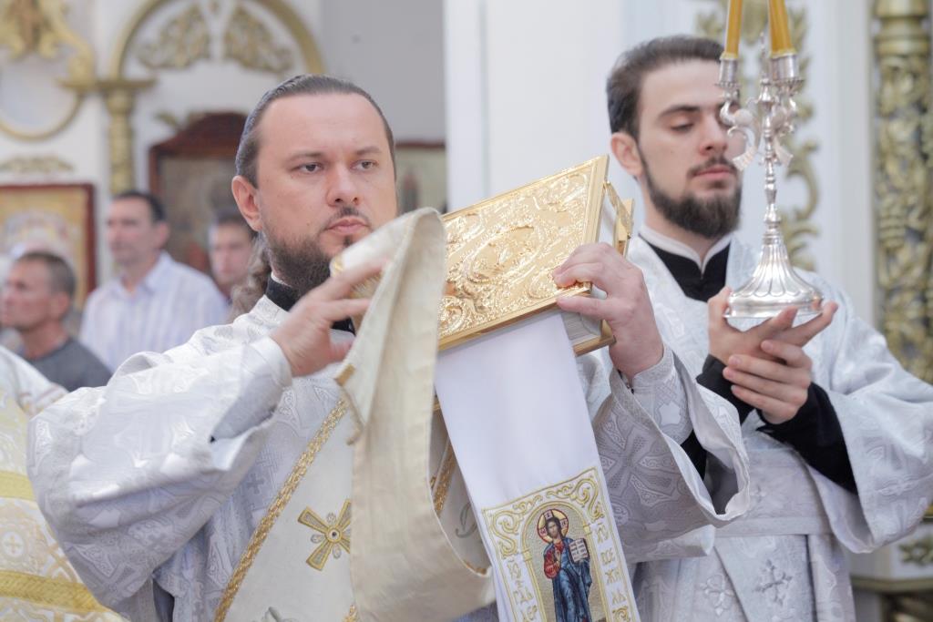 Преосвященнейшему Архипастырю сослужили: духовник епархии архимандрит Спиридон (Теплухин), ключарь собора иеромонах Никодим (Авдеев), клирик собора иеромонах Севастиан (Андрющенко), протодиакон Андрей Дудник, иеродиакон Мефодий (Шевчук), диакон Алексий Горбунов, диакон Владимир Лаврешин.