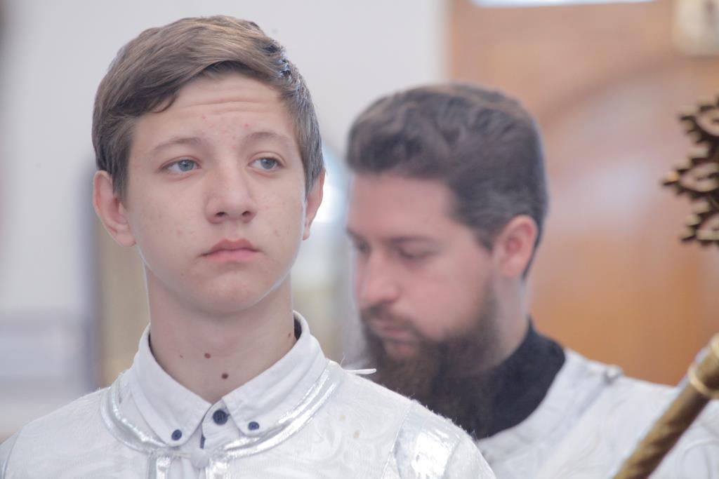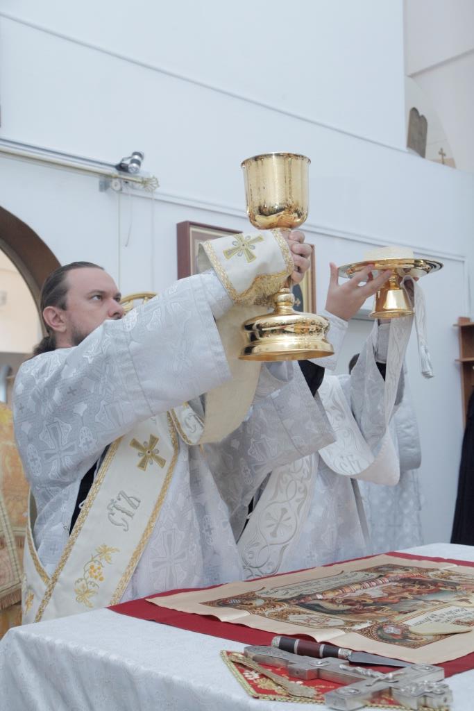 Песнопения Божественной Литургии исполнял хор кафедрального собора под управлением А. Мельникова. За воскресным Богослужением молились прихожане и паломники Свято-Андреевского собора, сотрудники епархиального управления и насельники Свято-Троицкого мужского монастыря. Перед причастием мирян проповедовал иеромонах Севастиан (Андрющенко).