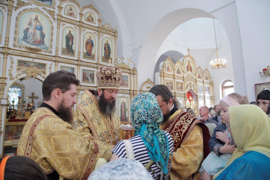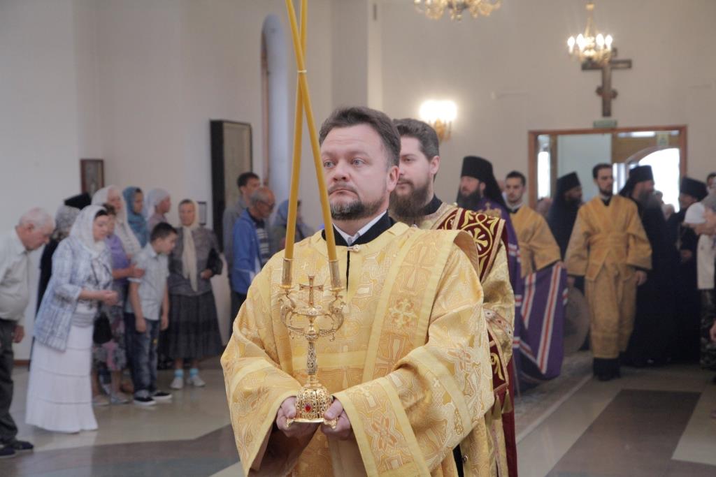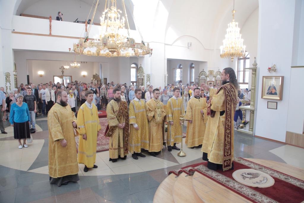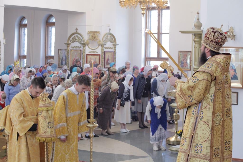 На воскресном богослужении молились прихожане и паломники главного храма епархии, насельники Свято-Троицкого мужского монастыря, сотрудники епархиального управления. Песнопения Божественной Литургии исполнял хор собора под управлением регента Андрея Мельникова.
