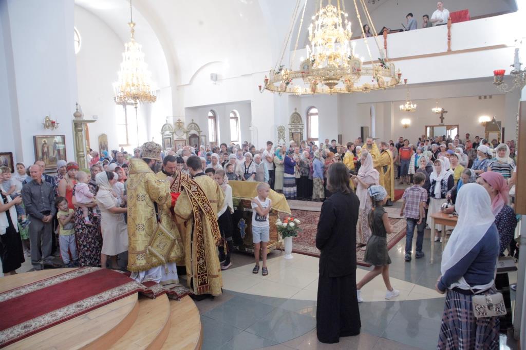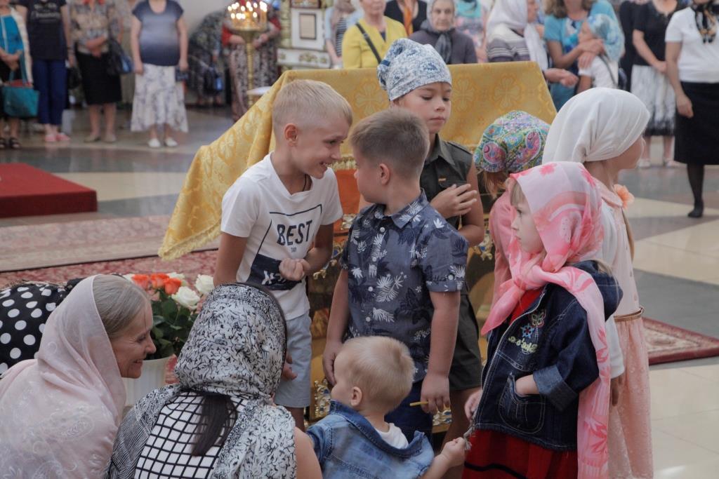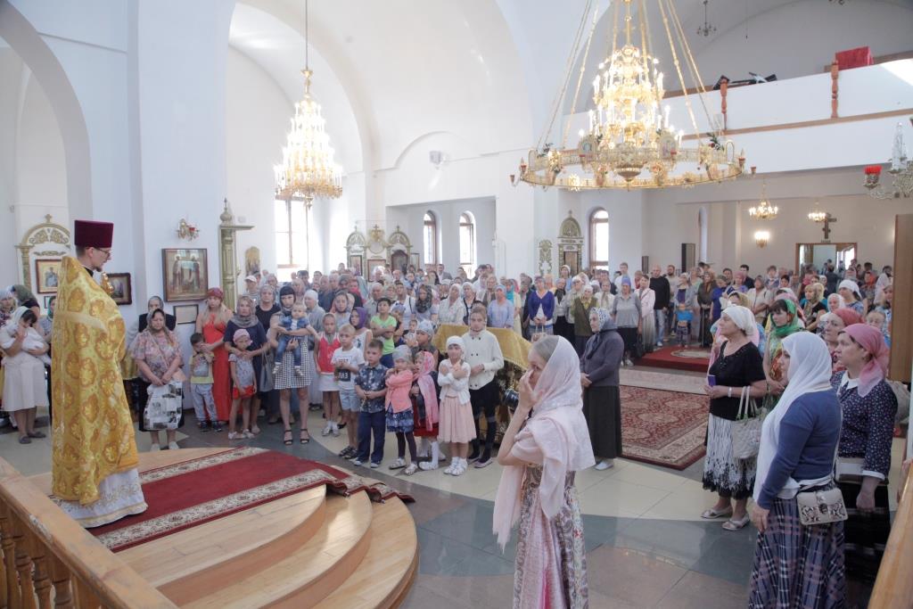 После богослужения епископ Амфилохий поздравил прихожан собора с праздником и рассказал собравшимся о начале строительства Духовно-административного корпуса Усть-Каменогорской епархии, призвав верных всячески помогать в важном деле возведения нового центра епархиальной жизни. В завершение Божественной Литургии было совершено особое молитвенное пение на начало учебного года.
