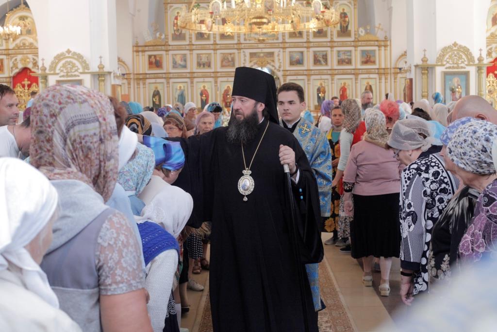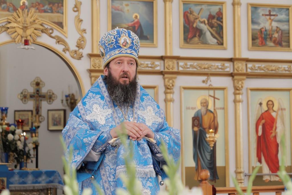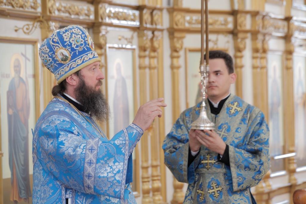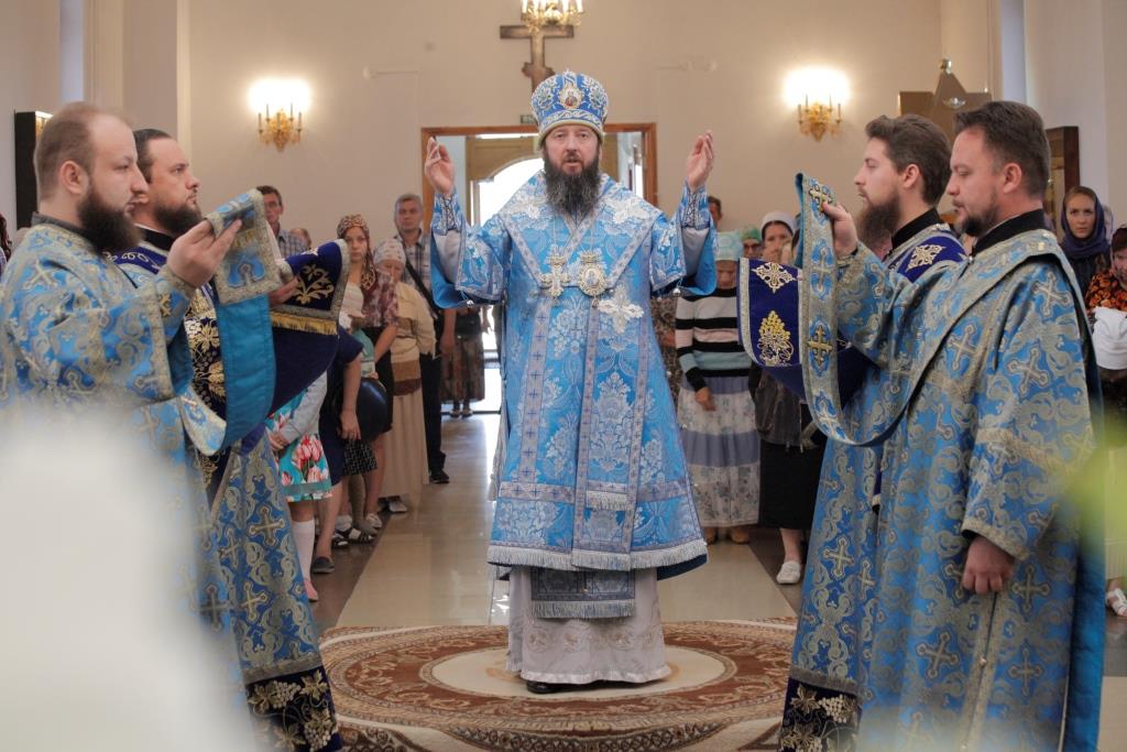 В завершение богослужения Архипастырь с клириками воспел славление Пресвятой Богородицы перед образом Ее Успения, после которого было совершено молебное пение святым отцам и новомученикам, участникам Поместного собора 1917-1918 годов. По окончании Литургии Преосвященнейший Владыка обратился ко всем молящимся со словами назидания.