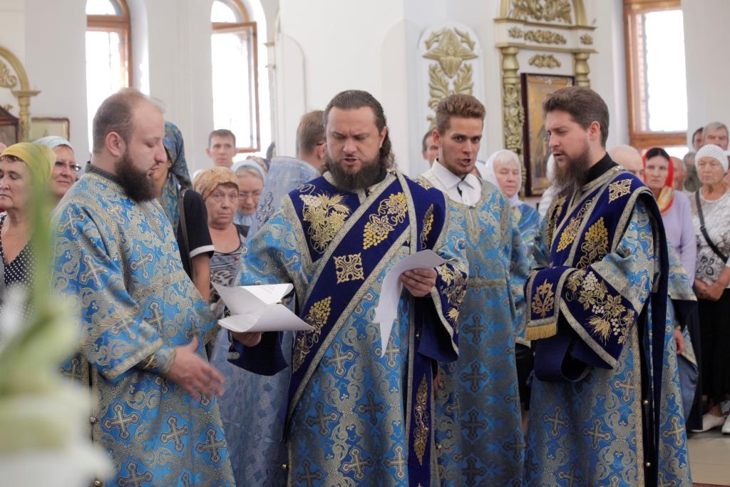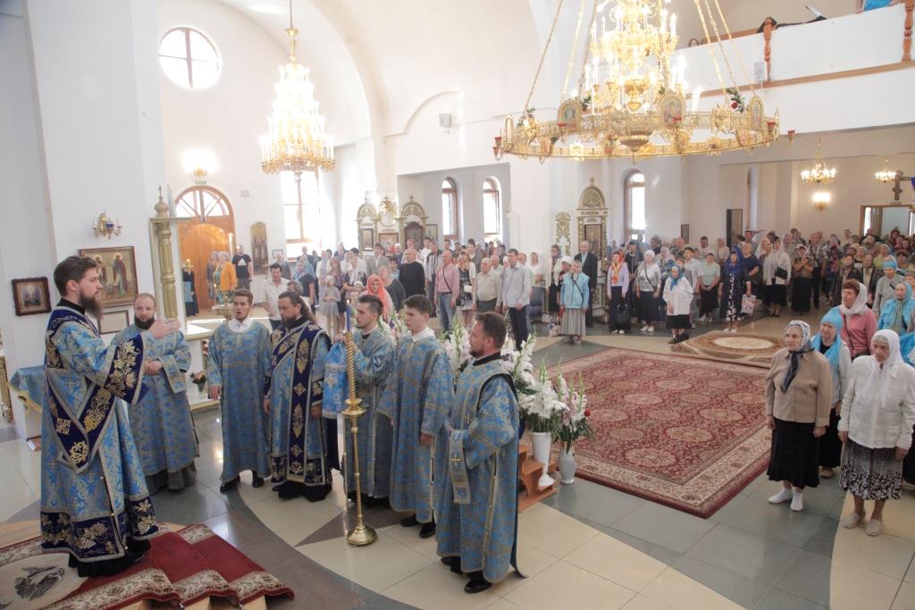 Песнопения праздника и Божественной Литургии исполнял хор кафедрального собора (регент — А. Мельников). За богослужением молились насельники Свято-Троицкого мужского монастыря, сотрудники епархиального управления, прихожане главного храма Рудного Алтая.