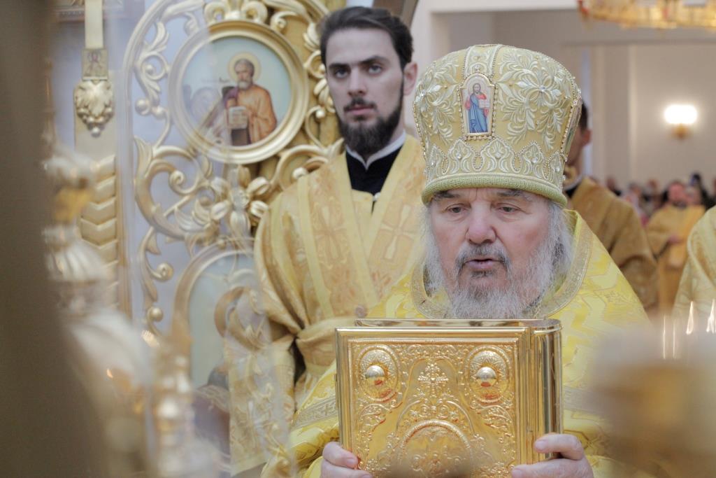 После проповеди епископ Амфилохий поздравил прихожан собора с праздником воскресного дня и пожелал всем мира и спасения души.