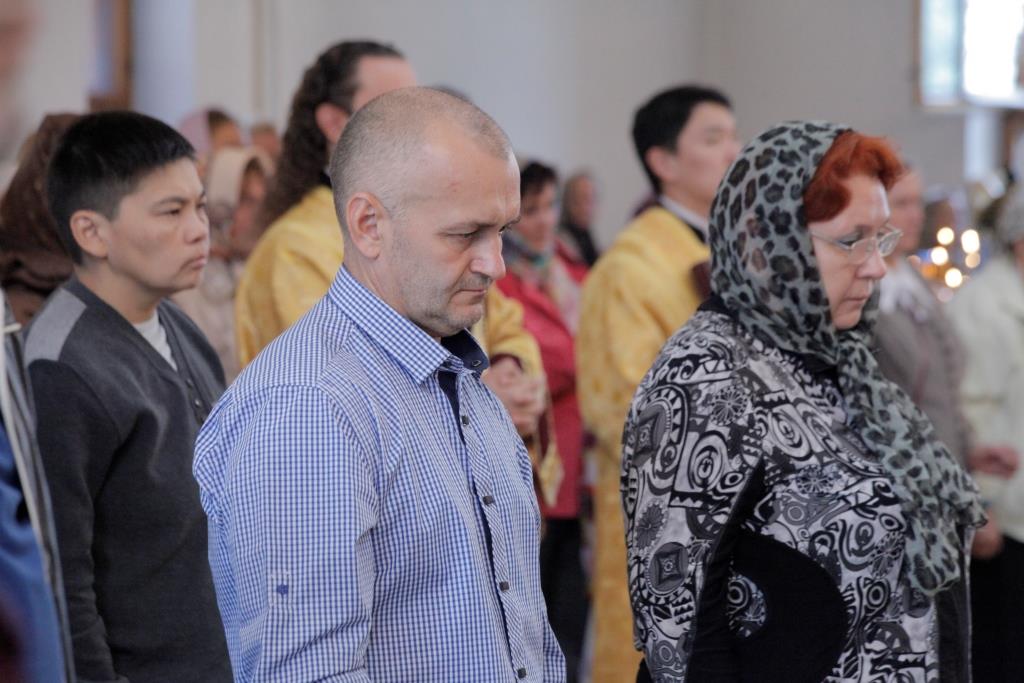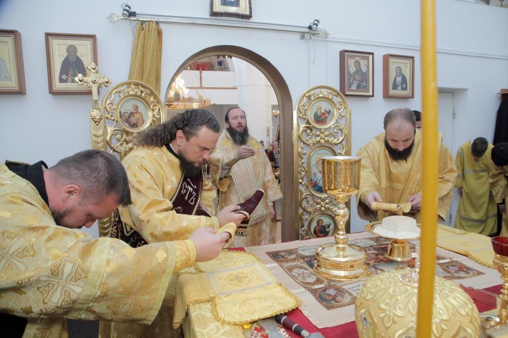 На воскресном богослужении молились насельники Свято-Троицкого мужского монастыря, прихожане главного храма епархии, сотрудники епархиального управления. Песнопения Божественной Литургии исполнял хор собора под управлением регента Андрея Мельникова.