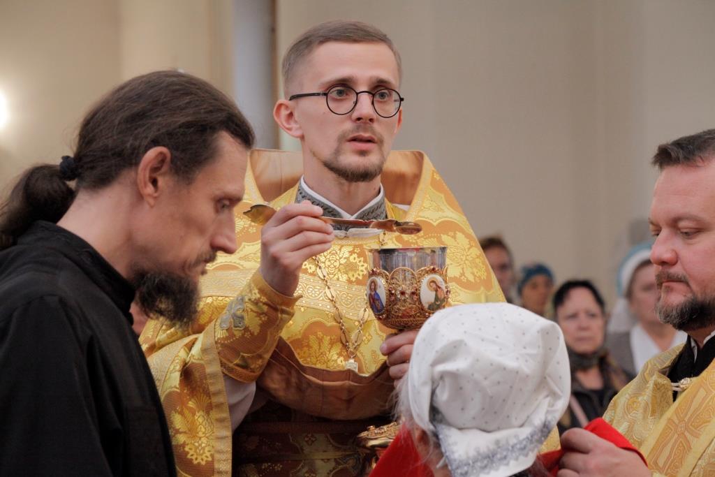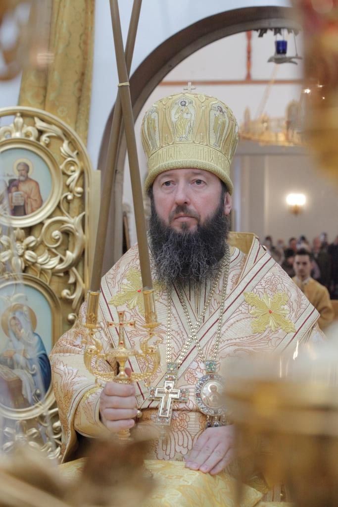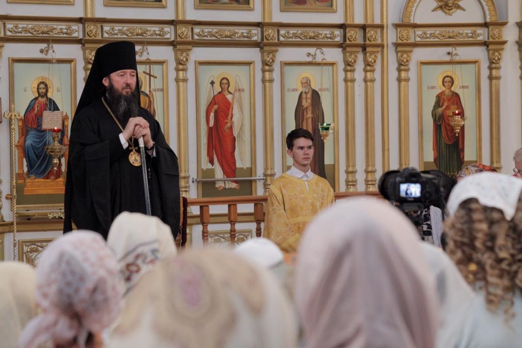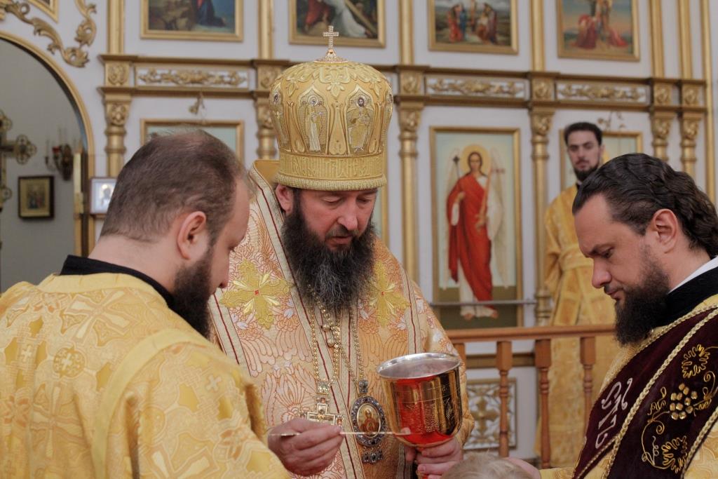 Перед причастием мирян проповедовал ключарь кафедрального собора. В завершение Божественной Литургии Преосвященнейший Архипастырь обратился к народу Божию со словами проповеди.