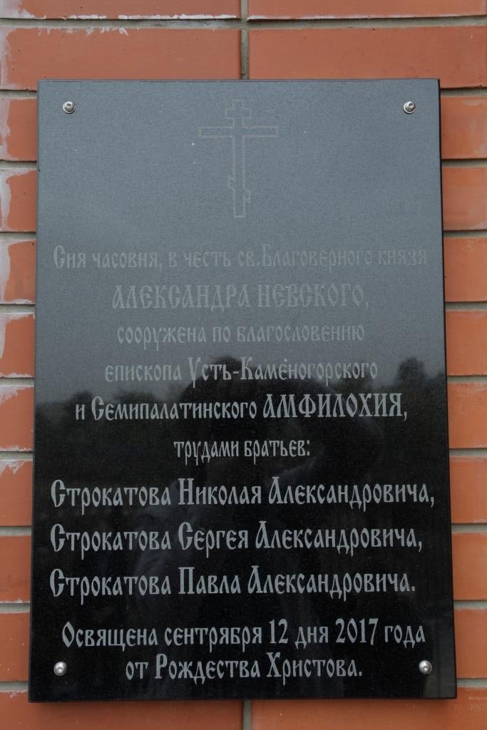 Идея строительства часовни возникла у Николая Александровича Строкатова, уроженца села Прапорщиково, ныне проживающего в городе Москва. Его благое начинание поддержали братья – Павел Александрович и Сергей Александрович Строкатовы. Аким Восточно-Казахстанской области Даниал Кенжетаевич Ахметов отнесся к идее братьев Строкатовых с большим пониманием. Строительство часовни одобрил и поддержал епископ Усть-Каменогорский и Семипалатинский Амфилохий. На призыв помочь построить часовню откликнулись многие представители предпринимательского сообщества Усть-Каменогорска и Восточно-Казахстанской области, благодаря их помощи участок под строительство и сама часовня были подготовлены и возведены в рекордно короткие сроки.