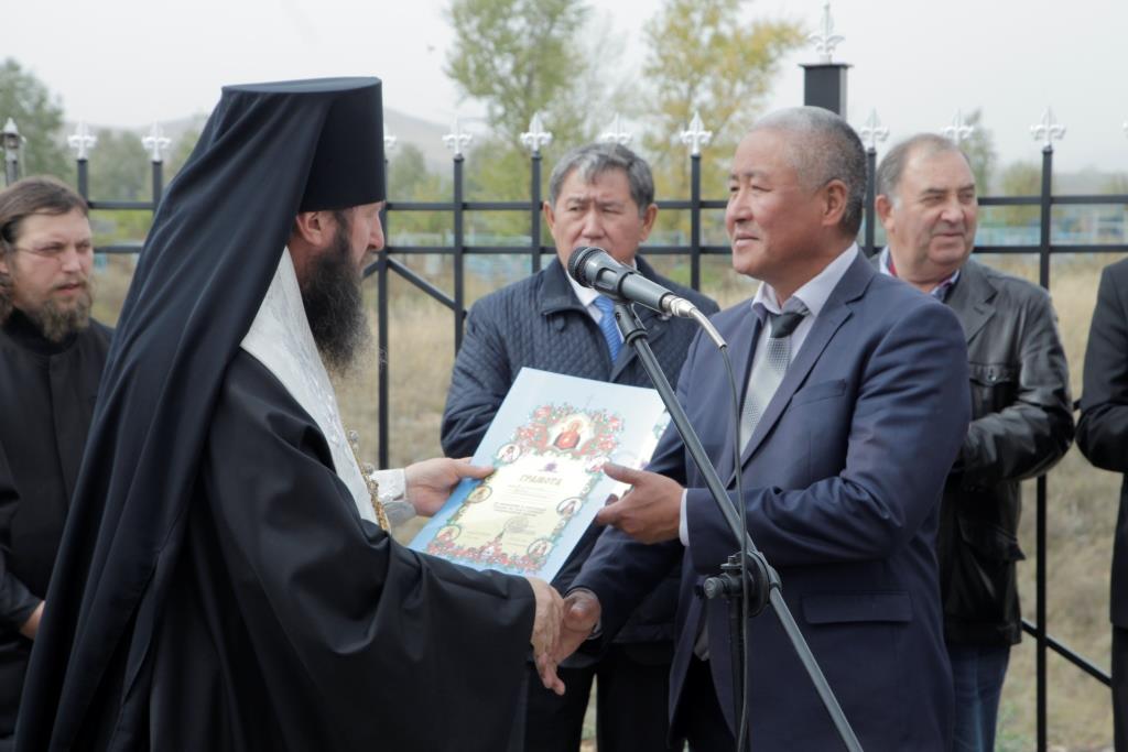 В ответном слове епископ Амфилохий поблагодарил представителей государственной власти, предпринимателей и строителей часовни за поддержку и содействие в благом деле открытия еще одного центра духовной жизни Восточно-Казахстанской области. Во внимание к усердным трудам Его Преосвященство наградил инициаторов строительства, уроженцев села Прапорщиково Строкатова Николая Александровича и Строкатова Сергея Александровича высокими церковными наградами – медалью в честь священномученика Пимена, епископа Верненского и Семиреченского и медалью «За заслуги перед Православной Церковью Казахстана».