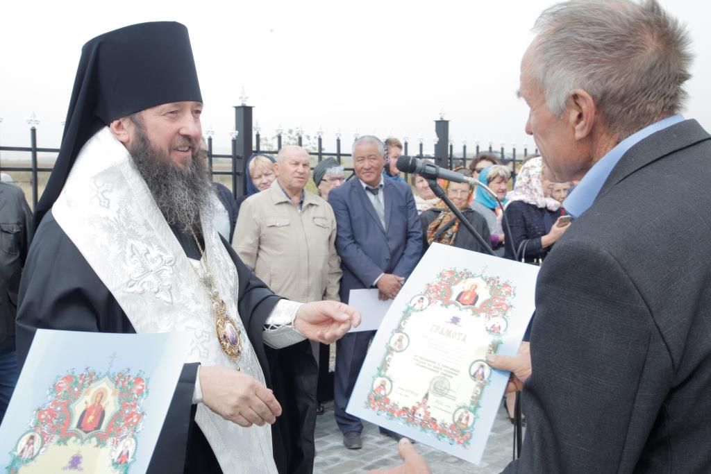За помощь и всестороннее содействие в деле строительства часовни аким Глубоковского района Байгонусов К.Б., аким Кировского сельского округа Жумагулов Е.К., руководитель ТОО «Имсталькон» Лабуков М.С., руководитель ТОО ТД «Валентина» Матасов В.М. были удостоены благословенных Архиерейских грамот. Так же благословенные грамоты были вручены представителям общественности села Прапорщиково и строителям, возводившим часовню и готовившим ее к освящению и открытию. После освящения и награждения все собравшиеся были приглашены на праздничный обед.