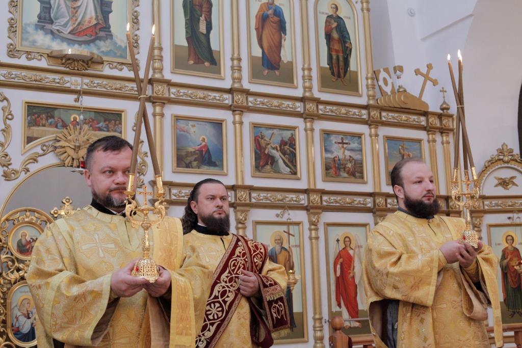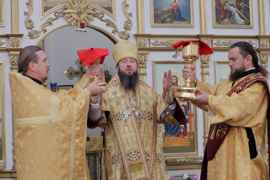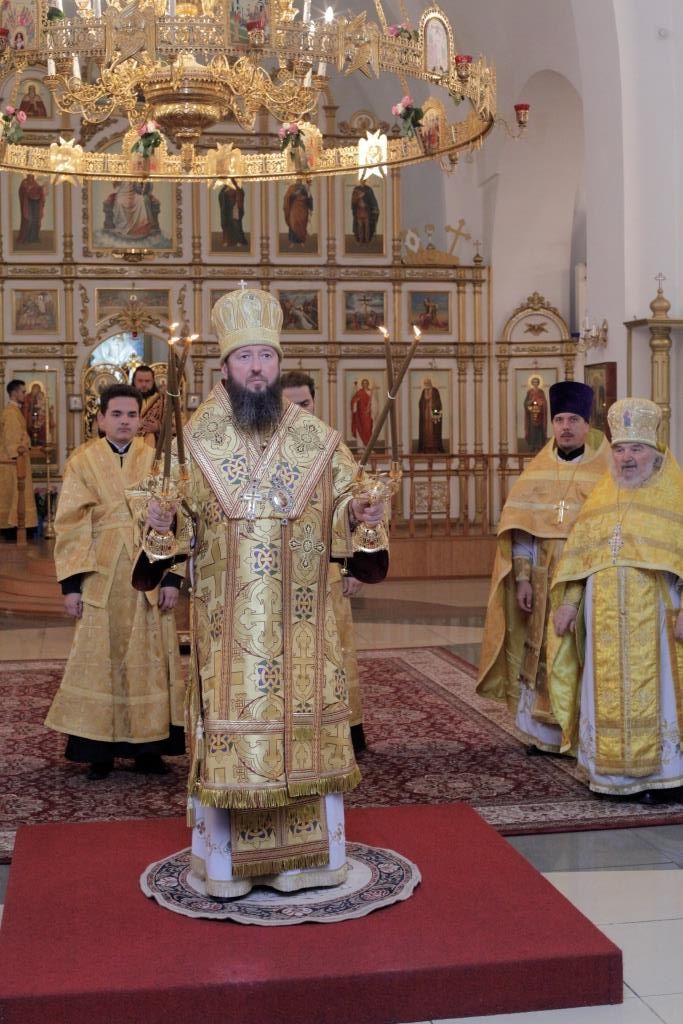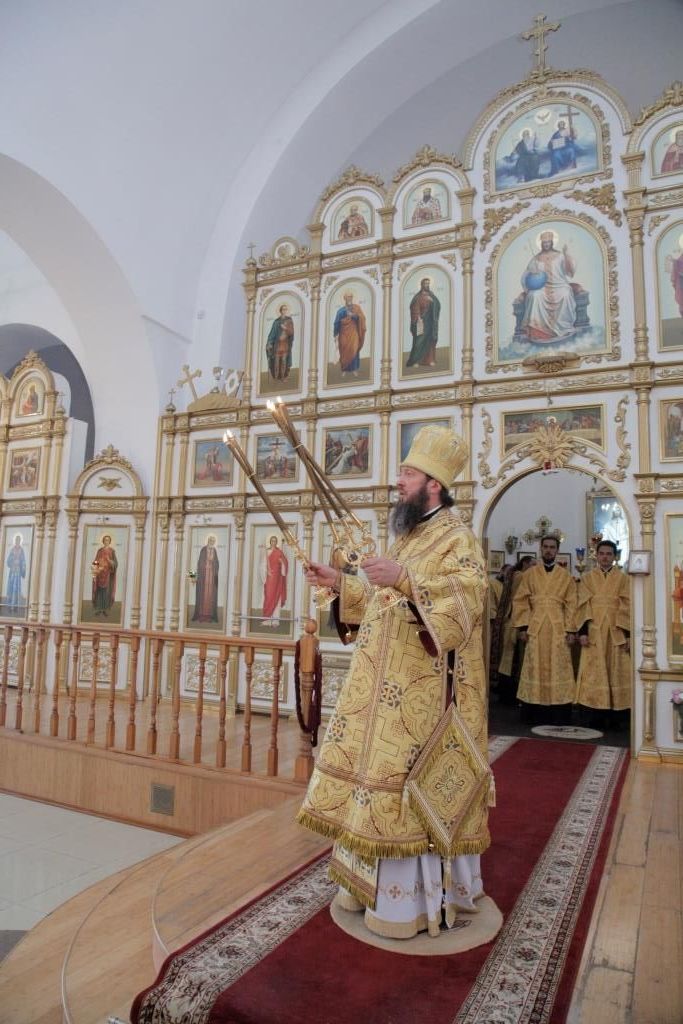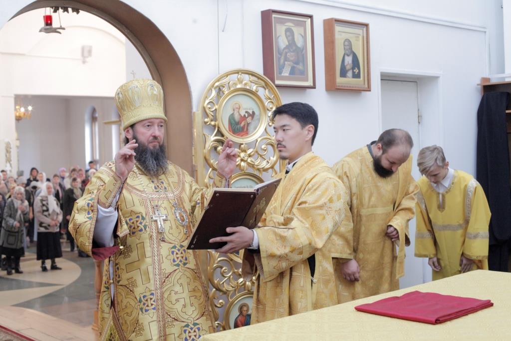 В воскресный день Управляющий Усть-Каменогорской и Семипалатинской епархией Преосвященнейший епископ Амфилохий возглавил служение Божественной Литургии святителя Иоанна Златоуста в кафедральном соборе во имя святого апостола Андрея Первозванного города Усть-Каменогорска. Его Преосвященству сослужили: духовник епархии архимандрит Спиридон (Теплухин), ключарь кафедрального собора иеромонах Никодим (Авдеев), клирики собора иерей Алексий Клепиков и иеромонах Севастиан (Андрющенко), протодиакон Андрей Дудник, диакон Алексий Горбунов, диакон Владимир Лаврешин.