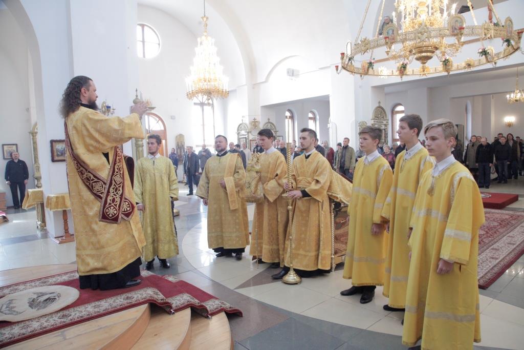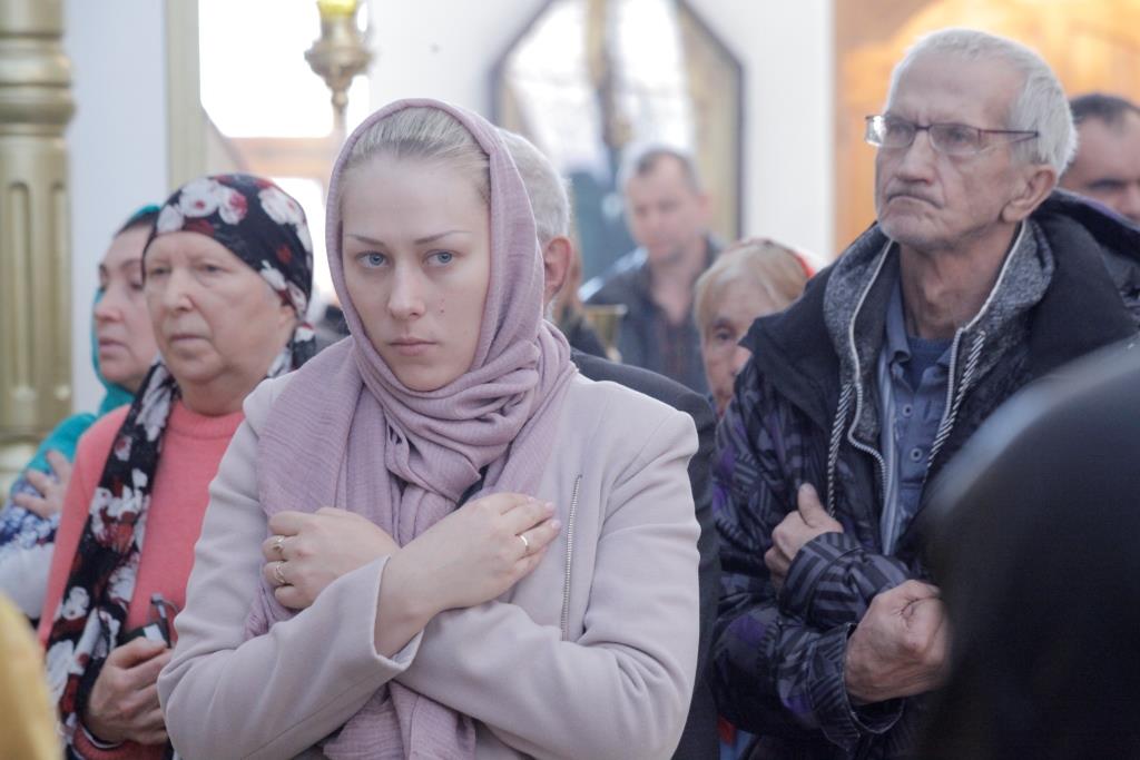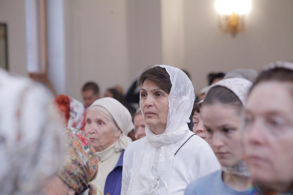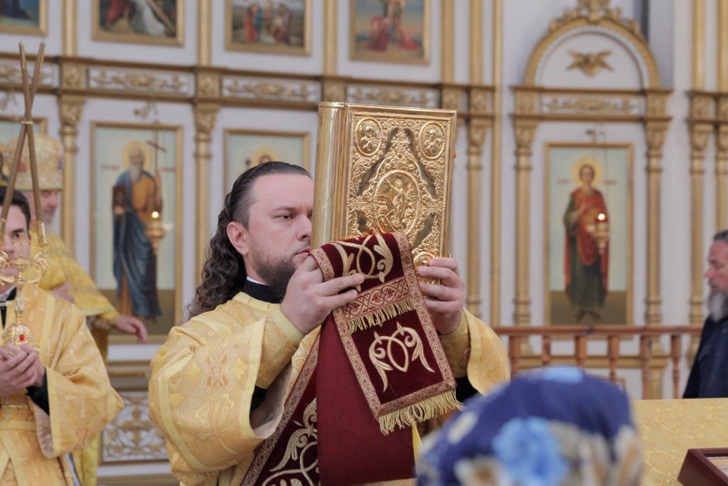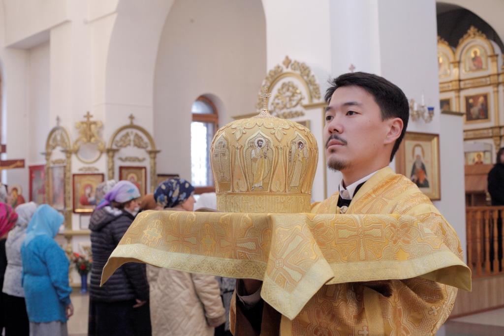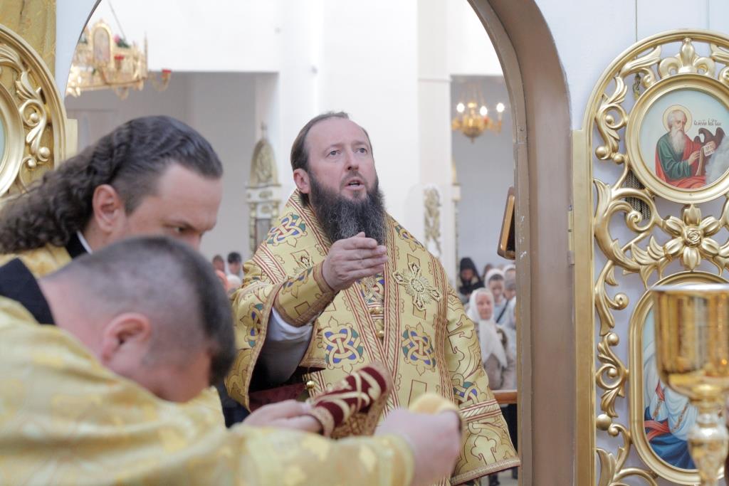Хор Андреевского собора под управлением Н. Романцовой исполнял песнопения Божественной Литургии. За праздничным воскресным богослужением молились прихожане главного храма Рудного Алтая, сотрудники епархиального управления, насельники Свято-Троицкого мужского монастыря. Для поклонения верующих из алтаря был изнесен иконописный образ преподобного Силуана Афонского с частицей его святых мощей. Перед причастием мирян проповедовал ключарь кафедрального собора.