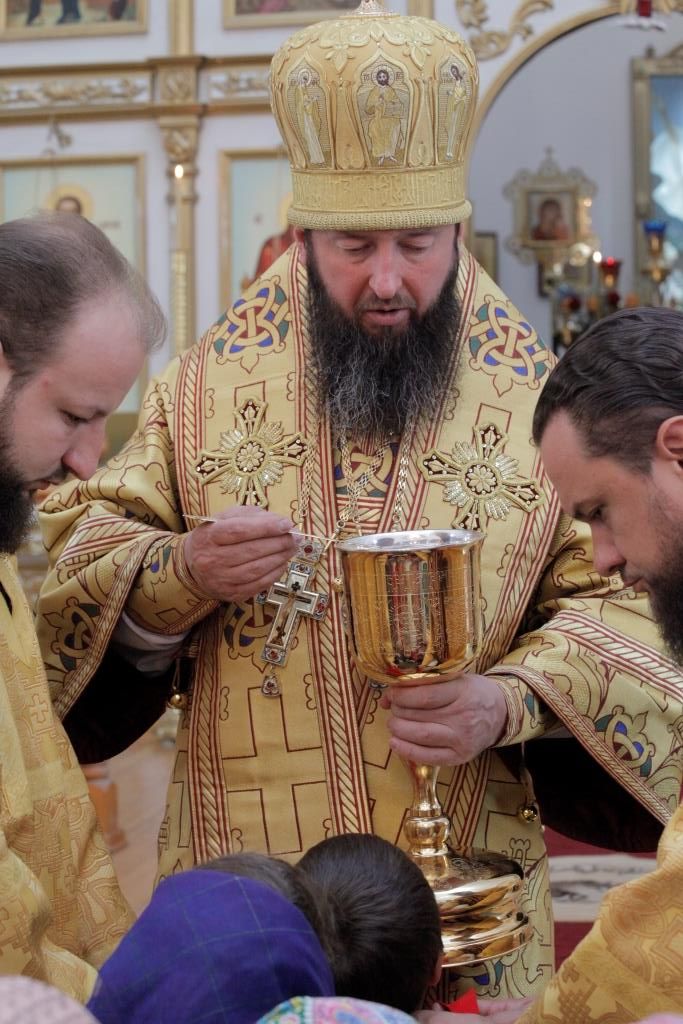 «Сегодня мы прославляем Воскресшего Господа и чтим грядущий праздник Воздвижения Честного Креста Господня. Апостол Павел пишет о тайне Креста Христова: «а я не желаю хвалиться, разве только крестом Господа нашего Иисуса Христа, которым для меня мир распят, и я для мира» (Гал. 6:14). Сам Господь в беседе с Никодимом говорил о Себе, что «должно вознесену (на кресте) быти Сыну Человеческому, дабы всякий, верующий в Него, не погиб, но имел жизнь вечную» (Ин. 3:14-15).