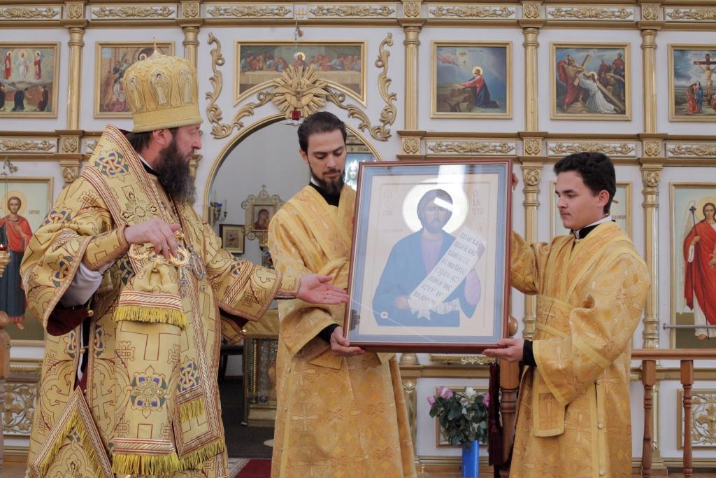 После проповеди Преосвященнейший Владыка передал в дар кафедральному собору иконописный образ сибирского подвижника благочестия – святого праведного Симеона Верхотурского.