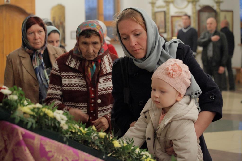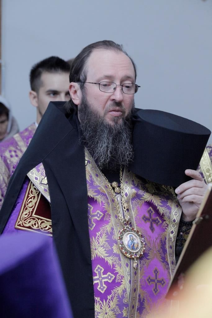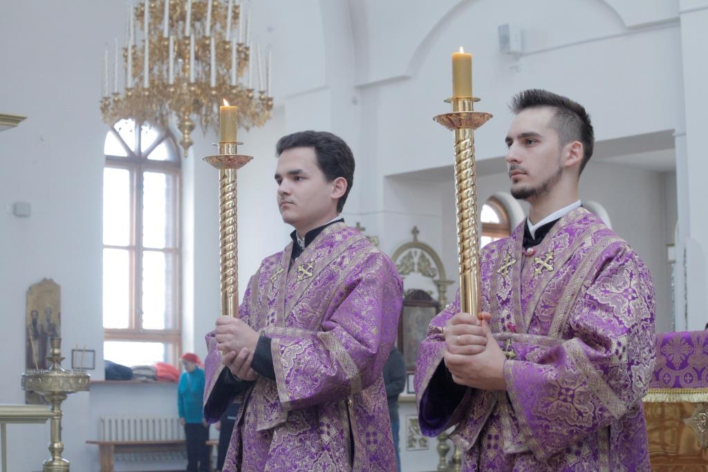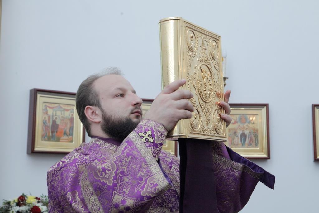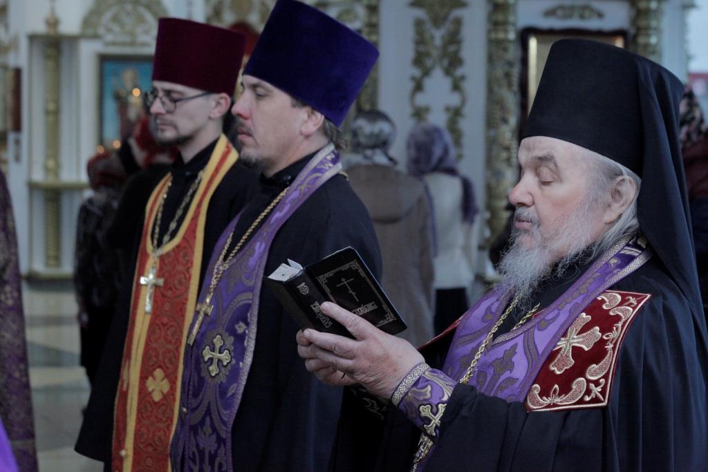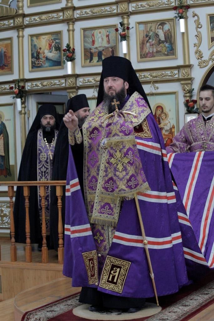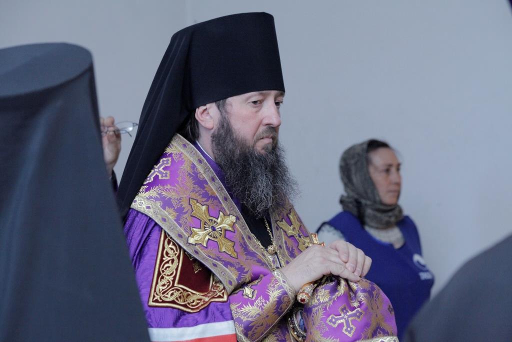 После великого славословия епископ Амфилохий совершил чин Воздвижения Креста. Воздвижение Креста совершается пять раз: на восток, на запад, на юг, на север, и в заключительный раз – вновь на восток. Каждое воздвижение сопровождается особым диаконским прошением. Воздвигаемый Крест, по древней традиции, священники омывают особым составом из благоуханного масла, вина и воды. После чина воздвижения Архипастырь помазал духовенство и прихожан освященным елеем.