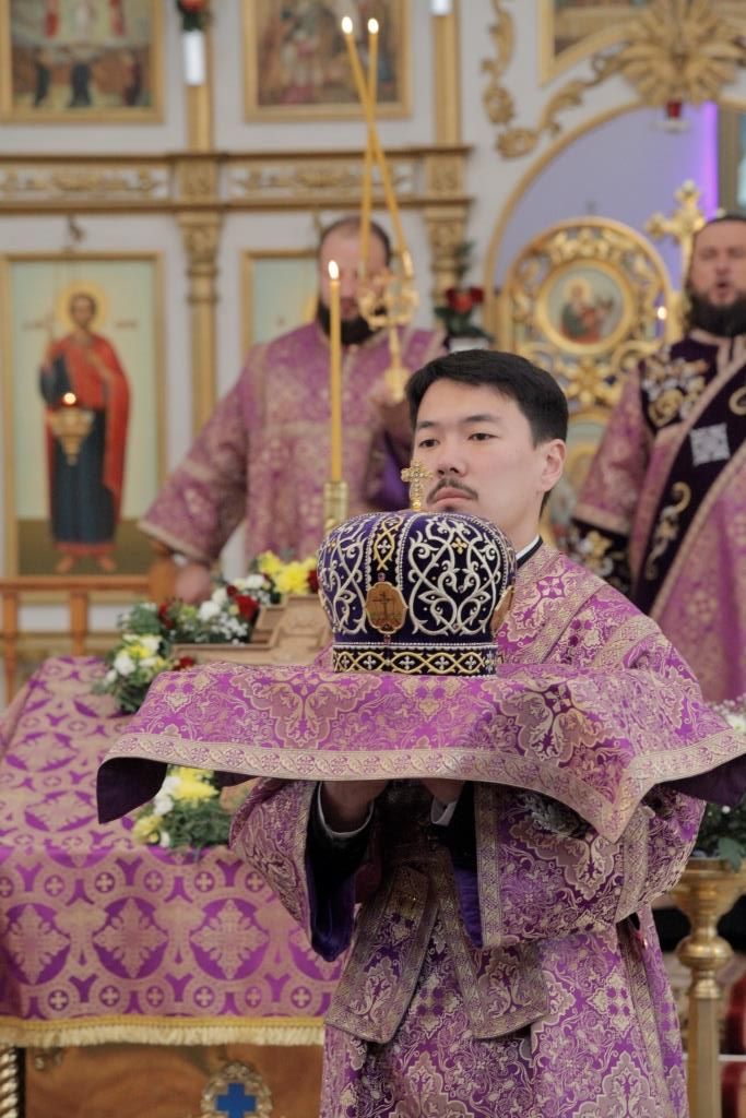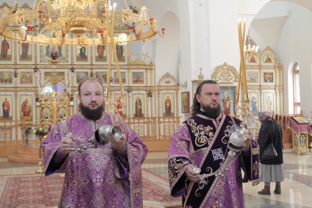 В день праздника Воздвижения Креста Господня Преосвященнейший епископ Усть-Каменогорский и Семипалатинский Амфилохий возглавил служение Божественной Литургии святителя Иоанна Златоуста в Свято-Андреевском кафедральном соборе. Его Преосвященству сослужили: духовник епархии архимандрит Спиридон (Теплухин), ключарь кафедрального собора иеромонах Никодим (Авдеев), клирики собора иерей Алексий Клепиков и иеромонах Севастиан (Андрющенко), протодиакон Андрей Дудник, диакон Алексий Горбунов.