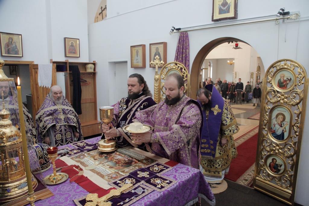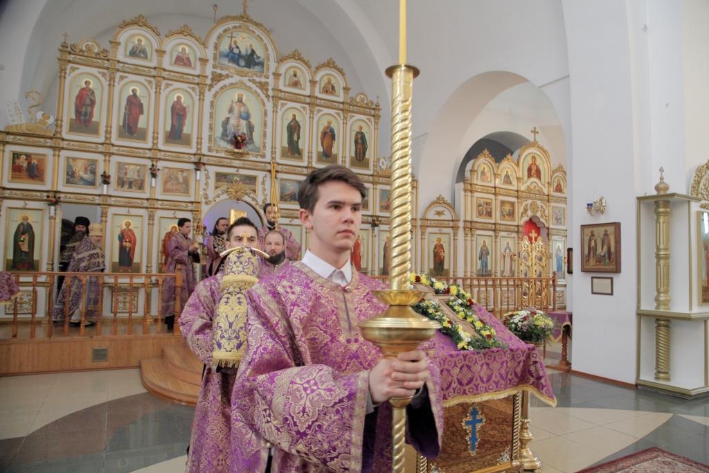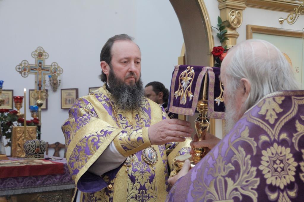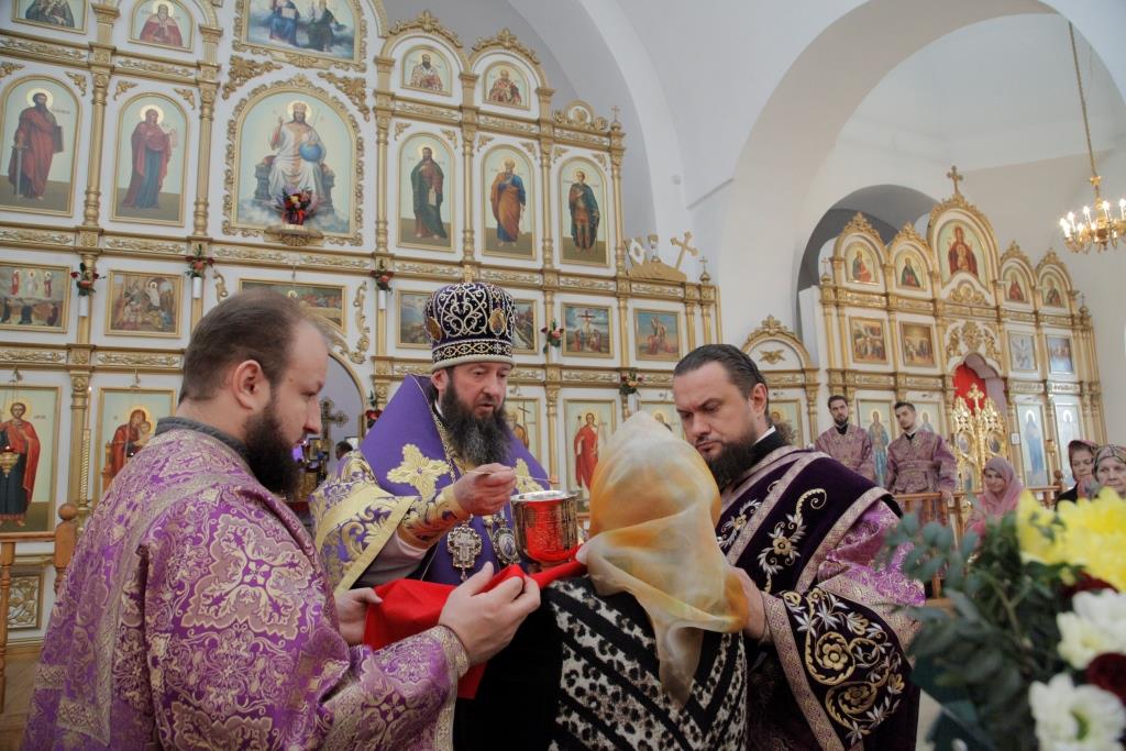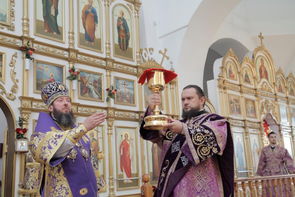 Причастием мирян проповедовал ключарь кафедрального собора.