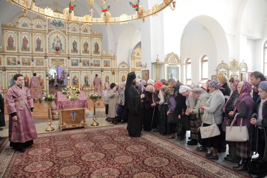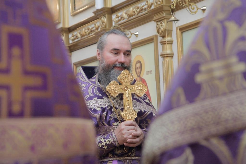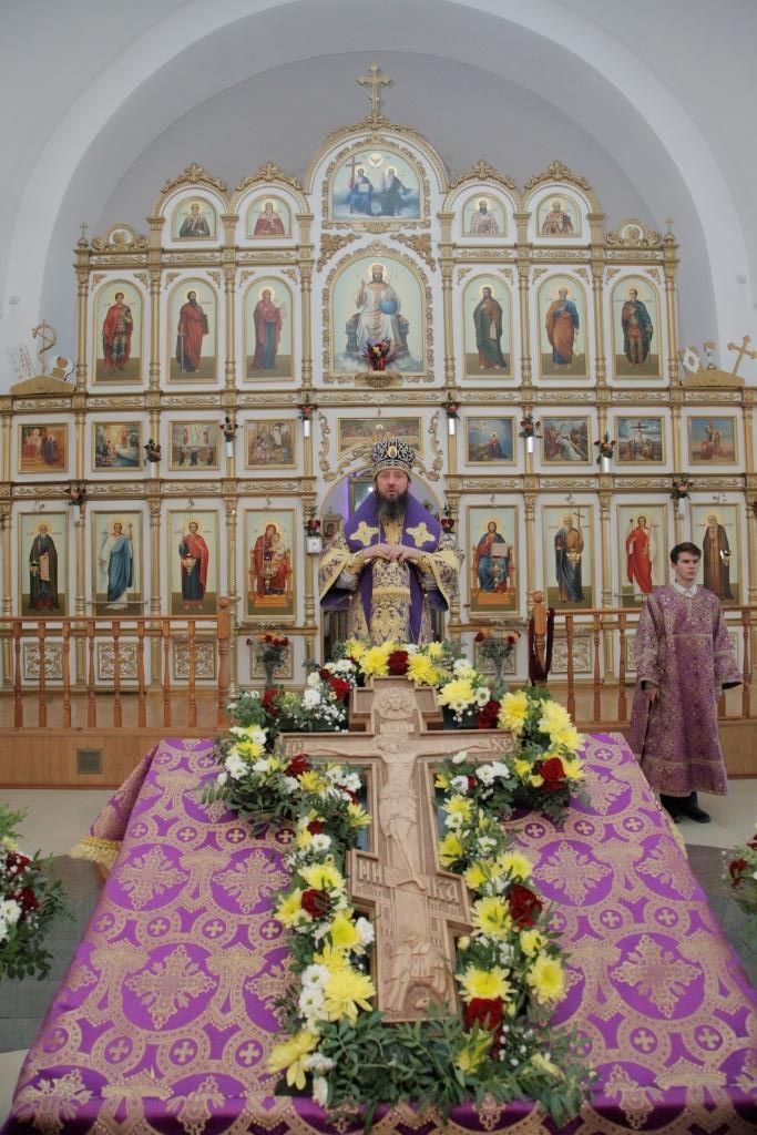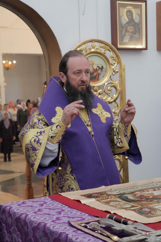 По окончании Богослужения было совершено поклонение Честному Древу Креста Господня, затем Архипастырь обратился к верующим со словом поучения.