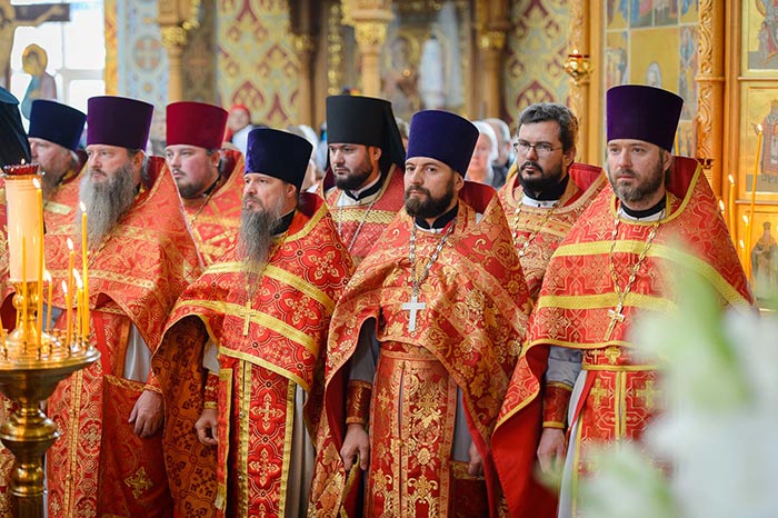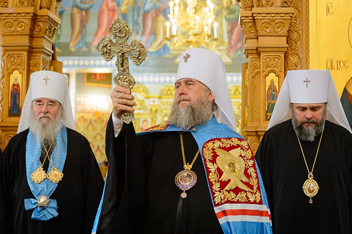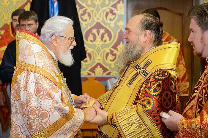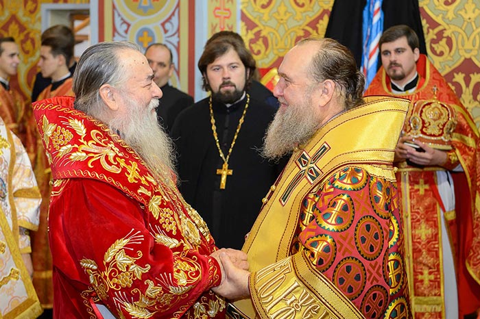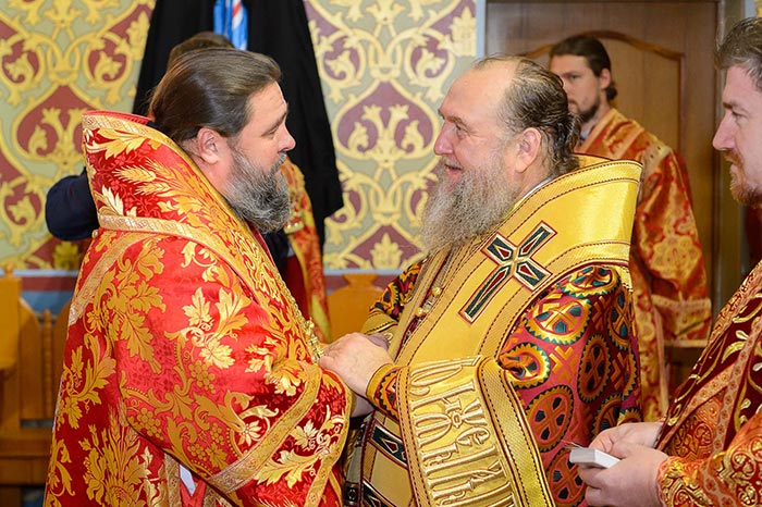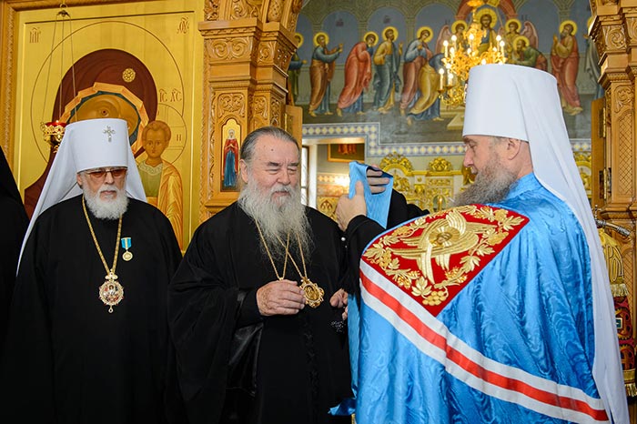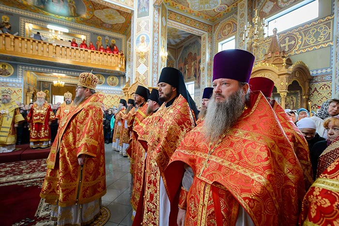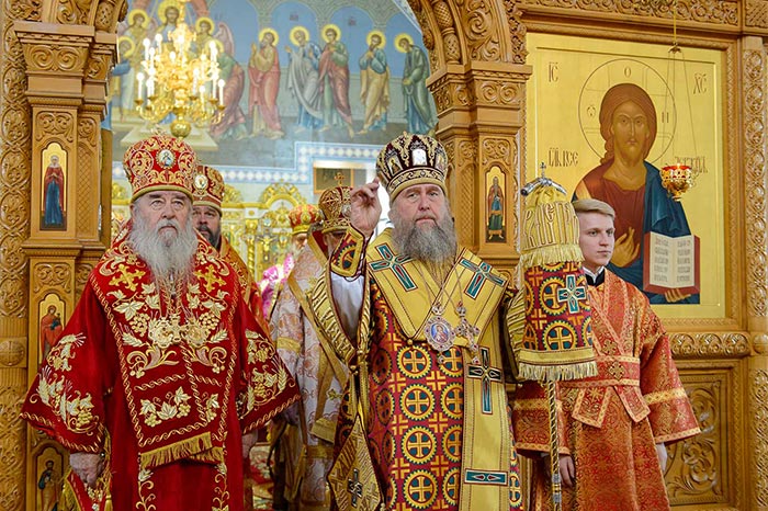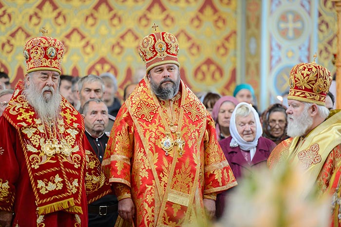 Главе Православной Церкви Казахстана сослужили: митрополит Днепропетровский и Павлоградский Ириней (Украинская Православная Церковь Московского Патриархата); глава Тверской митрополии митрополит Тверской и Кашинский Виктор; митрополит Криворожский и Никопольский Ефрем (Украинская Православная Церковь МП), архиепископ Уральский и Актюбинский Антоний, архиепископ Чимкентский и Таразский Елевферий, епископ Костанайский и Рудненский Анатолий, епископ Талдыкорганский Нектарий, епископ Каскеленский Геннадий, епископ Павлодарский и Экибастузский Варнава, епископ Карагандинский и Шахтинский Севастиан, епископ Усть-Каменогорский и Семипалатинский Амфилохий, епископ Кокшетауский и Акмолинский Серапион, епископ Петропавловский и Булаевский Владимир; благочинный Алма-Атинского церковного округа протоиерей Валерий Захаров, благочинный приходов Астаны архимандрит Сергий (Карамышев); духовенство, прибывшее с гостями-архипастырями, руководители отделов Казахстанского Митрополичьего округа в священном сане и клирики Астанайской и Алма-Атинской епархии.