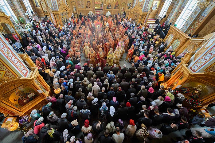 На сугубой ектении архипастыри вознесли молитву о мире и преодолении междоусобной брани на Украине.
