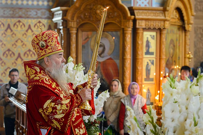 Литургию возглавил митрополит Астанайский и Казахстанский Александр,