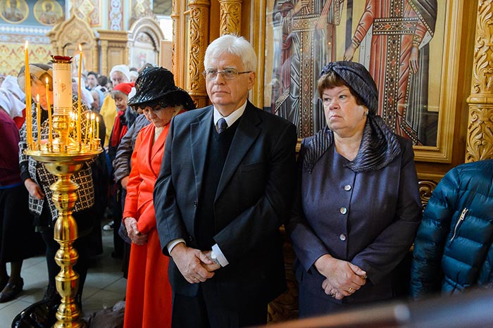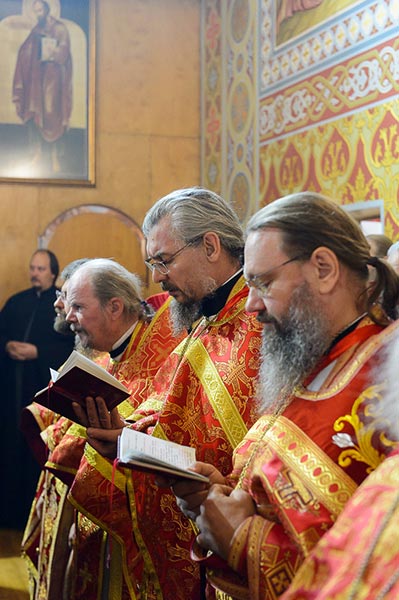 Песнопения исполняли хор Митрополичьего округа под управлением Заслуженного деятеля искусств России О.Н. Овчинникова и хор Софийского собора под управлением О.Г. Шульженко.