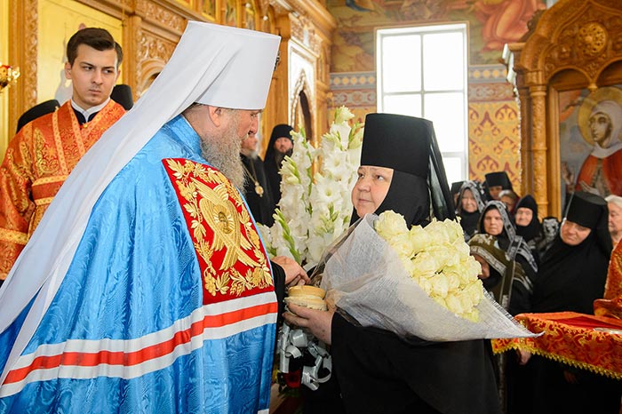 В праздник мучениц Веры, Надежды, Любови и матери их Софии день своей небесной покровительницы отмечает настоятельница Иверско-Серафимовского монастыря игумения Любовь (Якушкина). Митрополит Александр сказал слова поздравления матушке игумении, вручил святую просфору и подарил букет цветов.