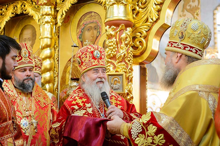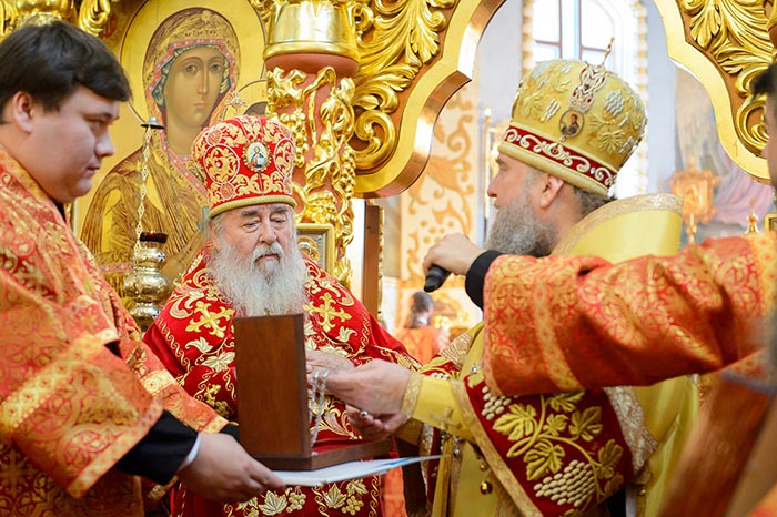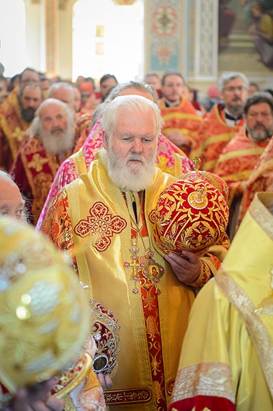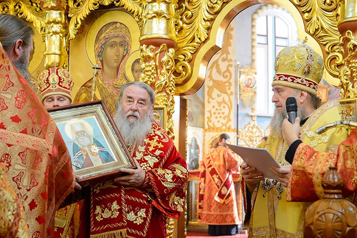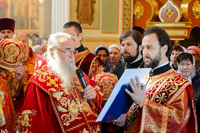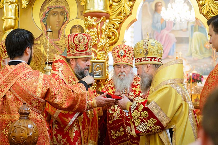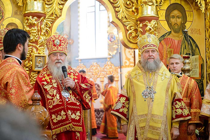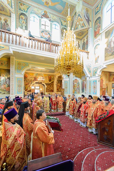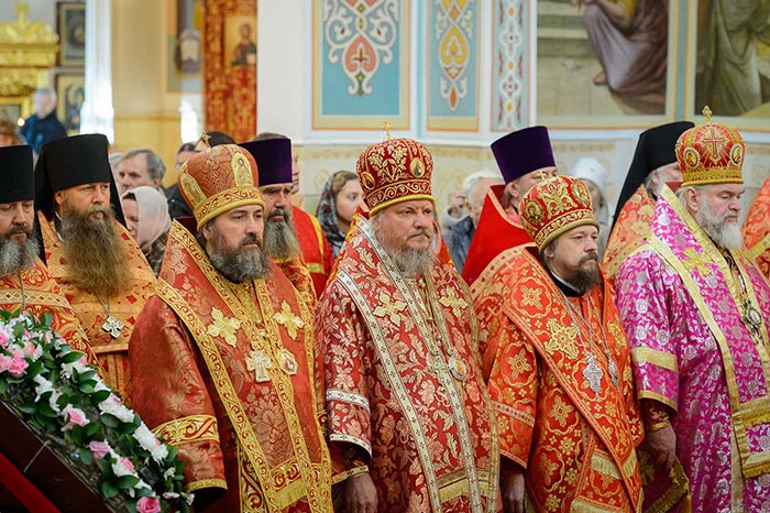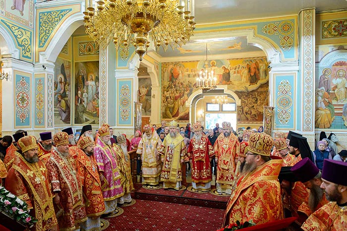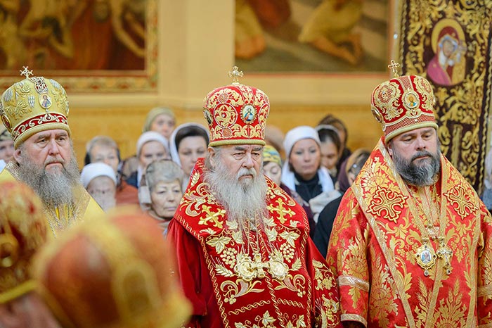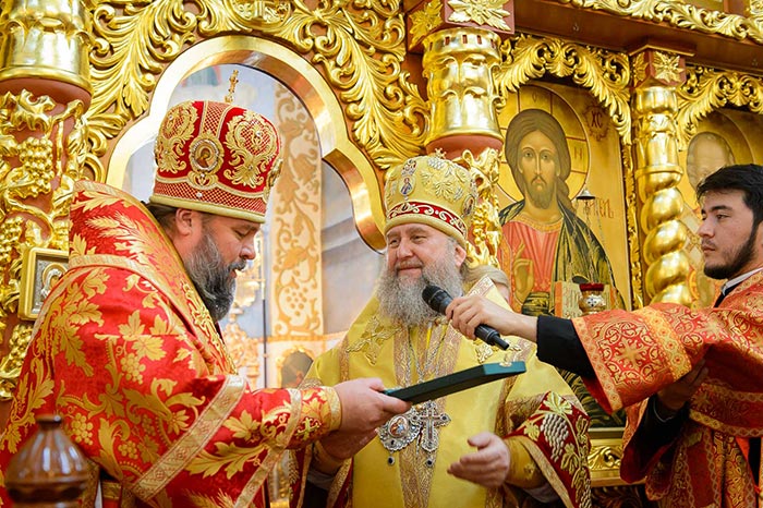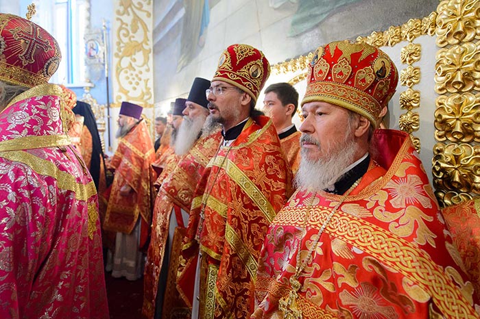 Главе Православной Церкви Казахстана сослужили: митрополит Днепропетровский и Павлоградский Ириней (Украинская Православная Церковь Московского Патриархата); глава Тверской митрополии митрополит Тверской и Кашинский Виктор; митрополит Криворожский и Никопольский Ефрем (Украинская Православная Церковь МП), архиепископ Уральский и Актюбинский Антоний, архиепископ Чимкентский и Таразский Елевферий, епископ Костанайский и Рудненский Анатолий, епископ Талдыкорганский Нектарий, епископ Каскеленский Геннадий, епископ Павлодарский и Экибастузский Варнава, епископ Карагандинский и Шахтинский Севастиан, епископ Усть-Каменогорский и Семипалатинский Амфилохий, епископ Кокшетауский и Акмолинский Серапион, епископ Петропавловский и Булаевский Владимир; благочинный Алма-Атинского церковного округа, настоятель Никольского собора протоиерей Валерий Захаров; духовенство, прибывшее с гостями-архипастырями, руководители отделов Казахстанского Митрополичьего округа в священном сане и клирики Астанайской и Алма-Атинской епархии.