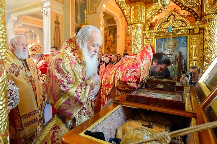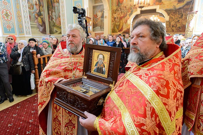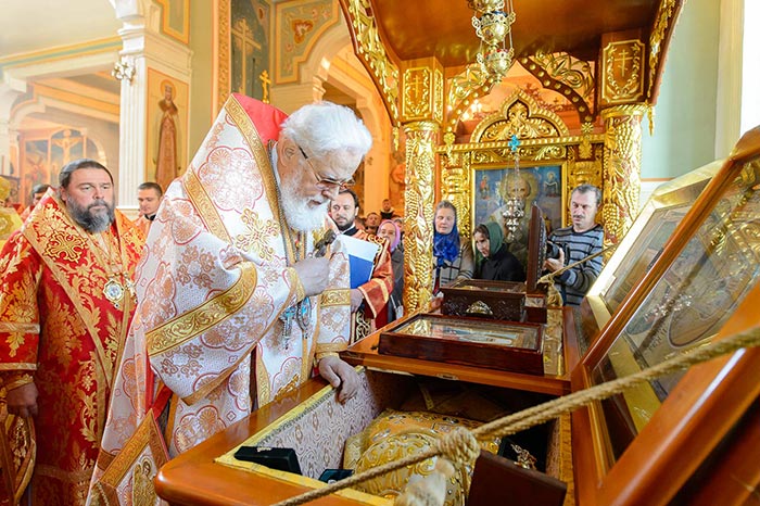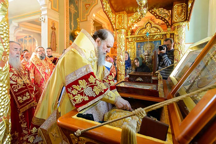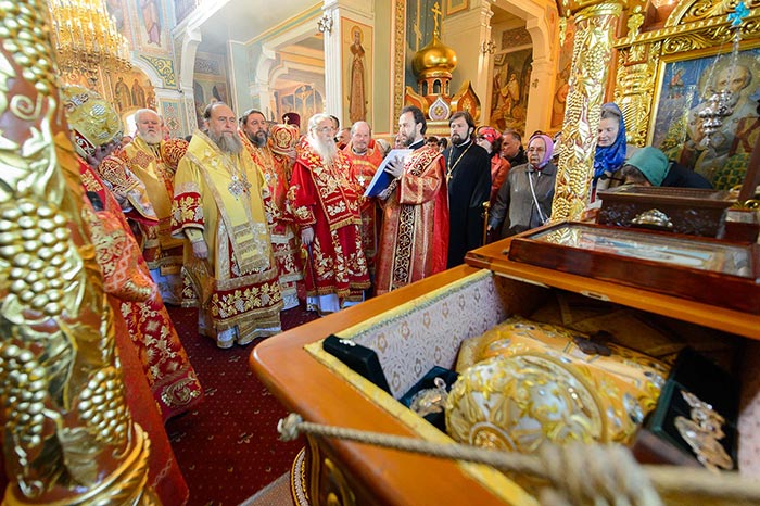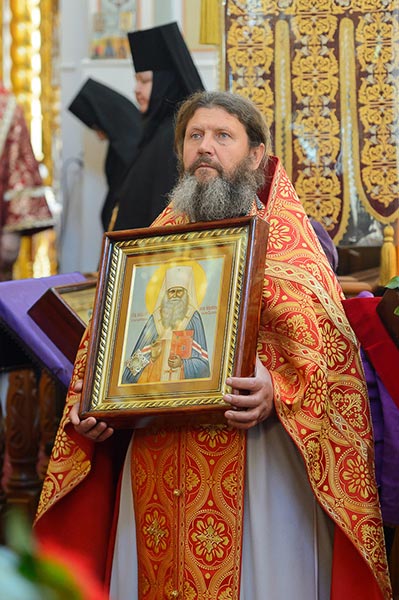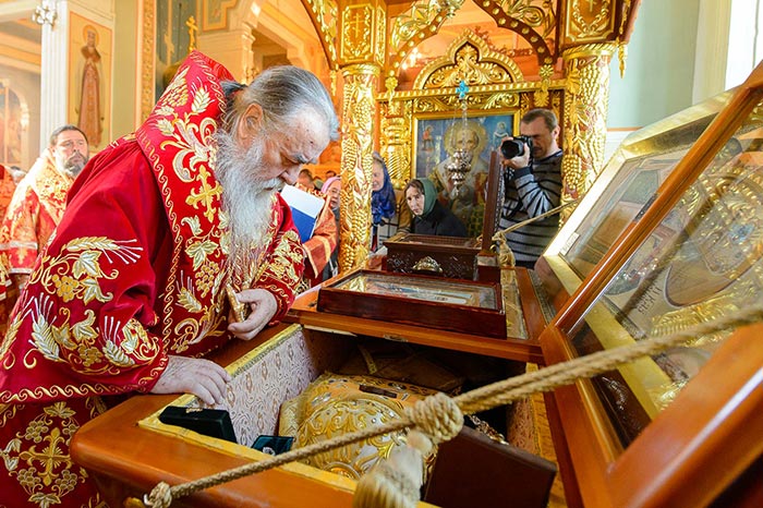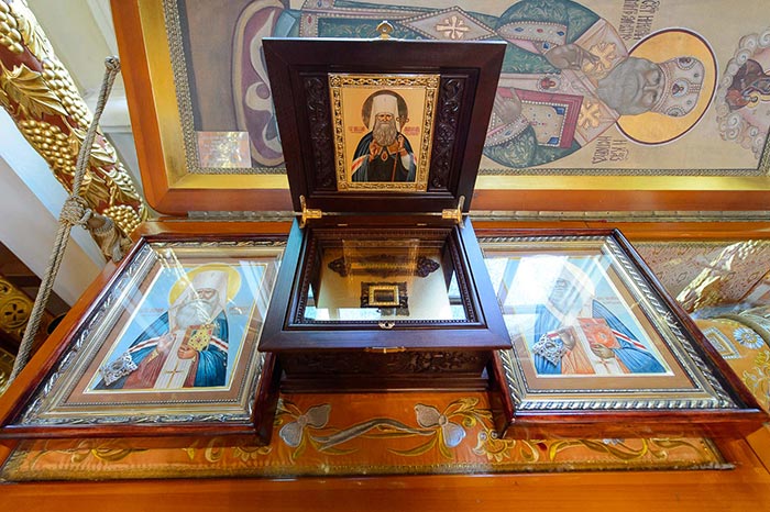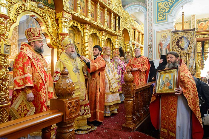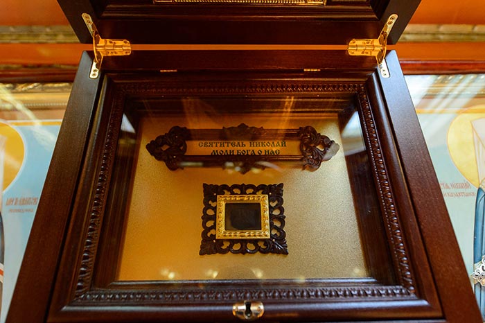 По отпусте Литургии состоялось поклонение честному и животворящему Кресту и славление священноисповеднику Николаю перед ракой с его честными мощами.