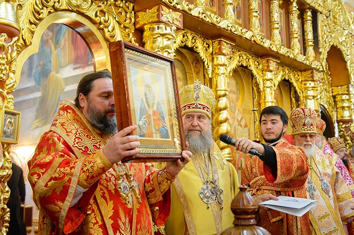 Божественная Литургия с участием иерархов из России и Украины и всего казахстанского епископата была совершена в Никольском соборе Южной столицы, где почивают мощи небесного покровителя Митрополичьего округа – священноисповедника Николая, митрополита Алма-Атинского.