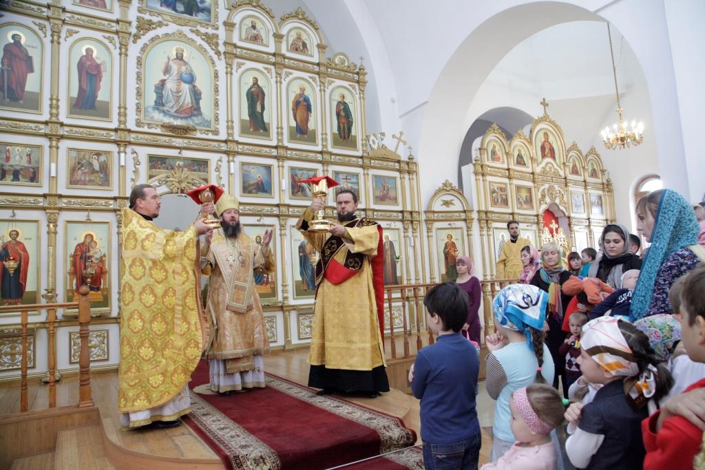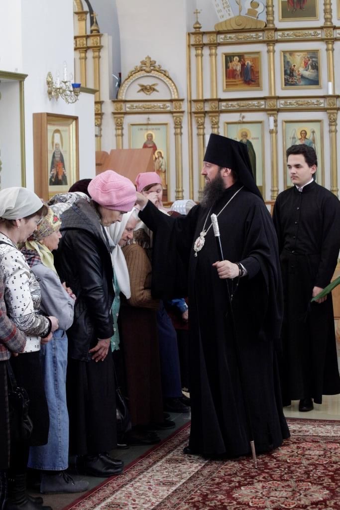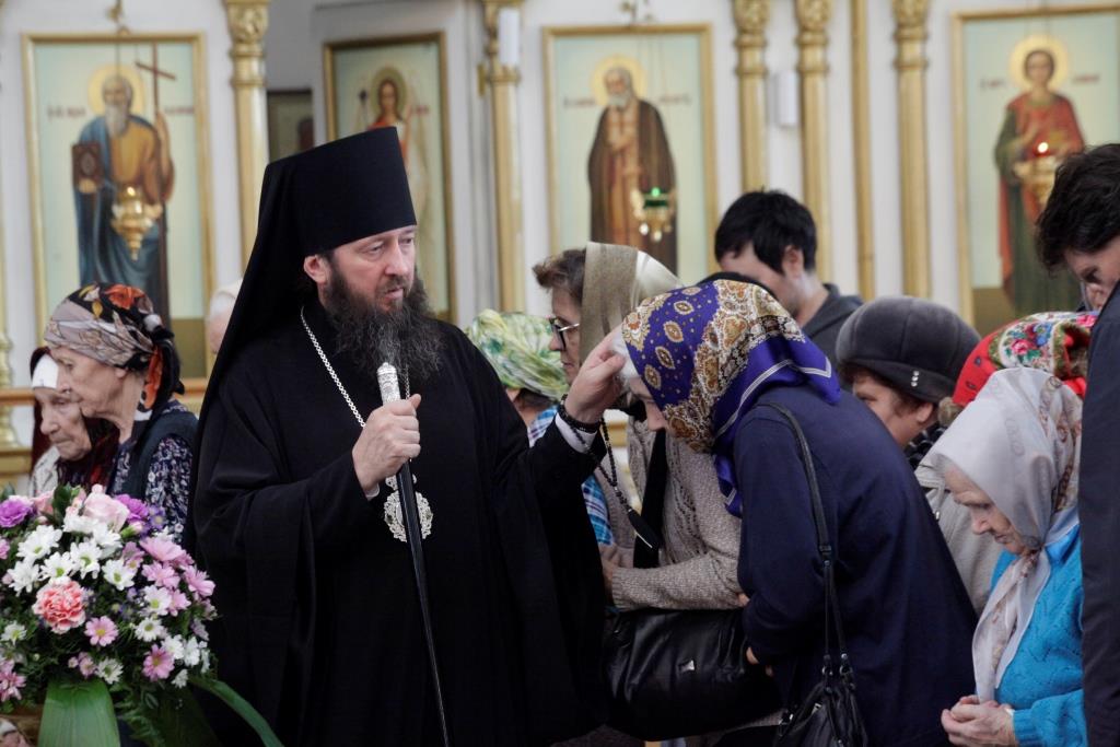 После окончания Литургии Преосвященнейший Владыка призвал на прихожан Божие благословение и пожелал всем собравшимся крепости духовных и телесных сил.
