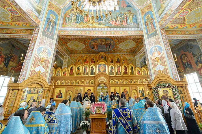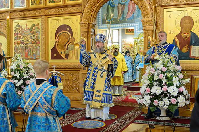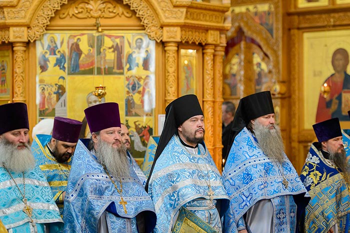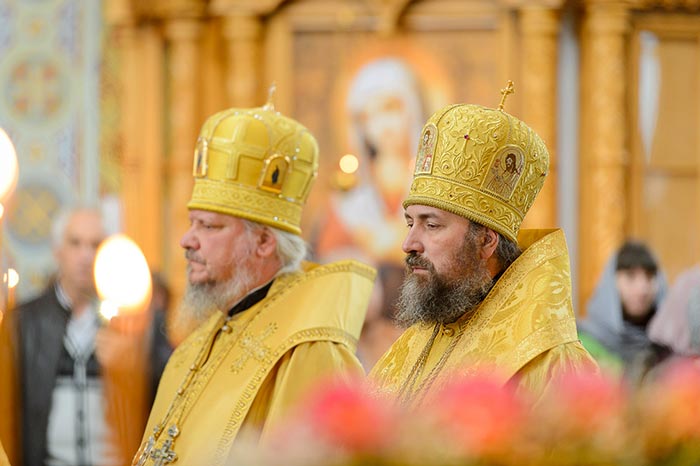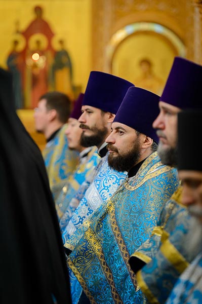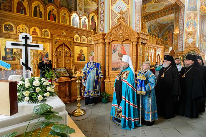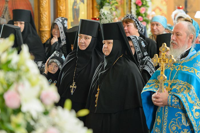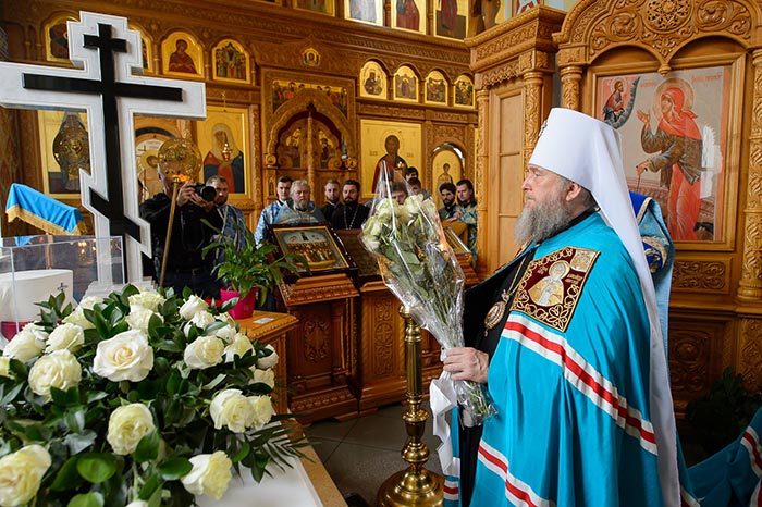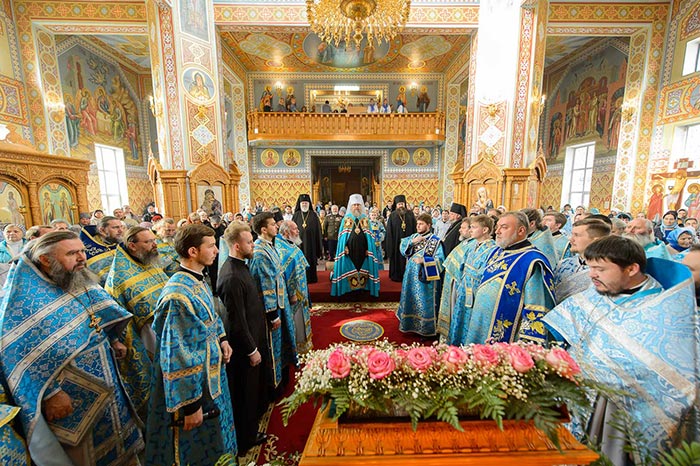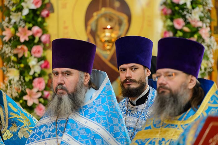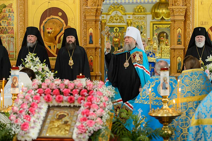 Литургия завершилась славлением Пресвятой Богородице перед Ее Иверским образом и литией у гробницы митрополита Иосифа (Чернова), после чего митрополит Александр поздравил Преосвященных епископов, матушку игумению, духовенство и прихожан с престольным праздником и обратился к верующим со словами архипастырской проповеди.