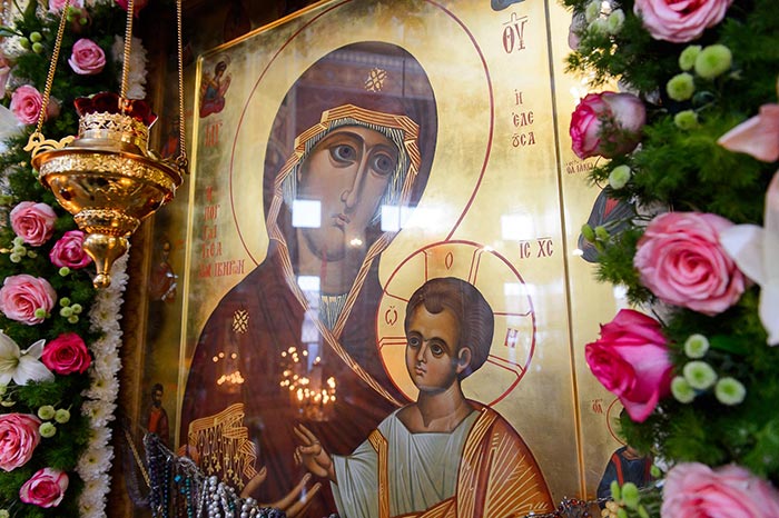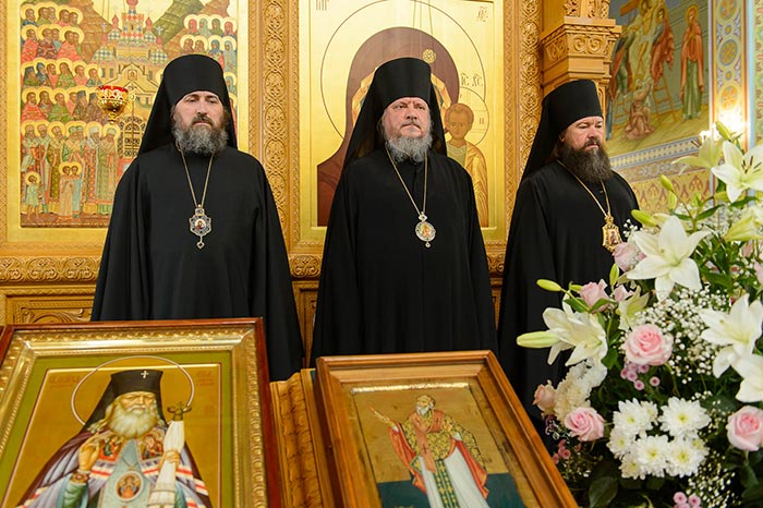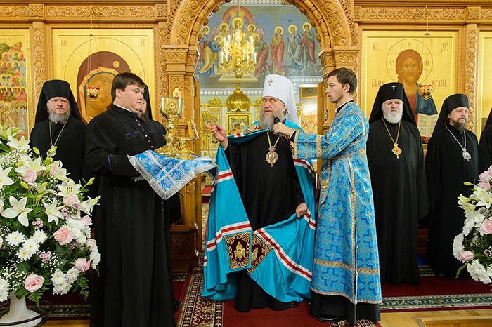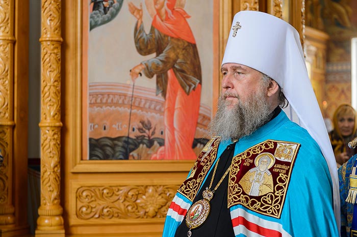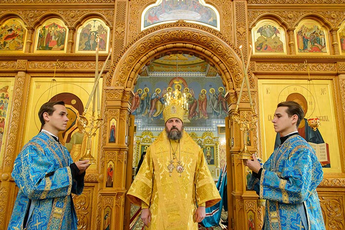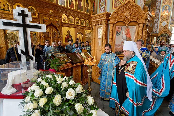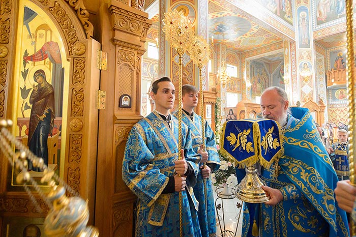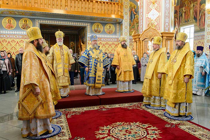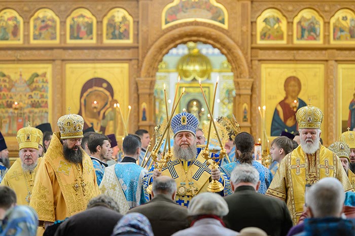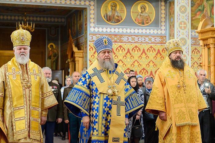 Литургия завершилась славлением Пресвятой Богородице перед Ее Иверским образом и литией у гробницы митрополита Иосифа (Чернова), после чего митрополит Александр поздравил Преосвященных епископов, матушку игумению, духовенство и прихожан с престольным праздником и обратился к верующим со словами архипастырской проповеди.