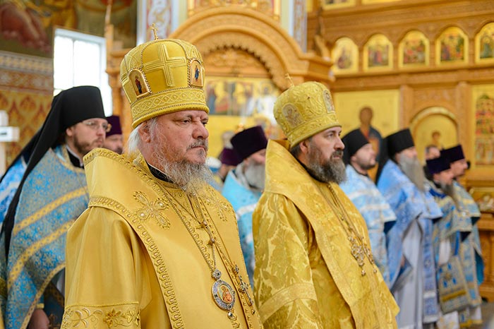 Главе Православной Церкви Казахстана сослужили: архиепископ Чимкентский и Таразский Елевферий; викарий Астанайской епархии епископ Талдыкорганский Нектарий; Управляющий делами Казахстанского Митрополичьего округа епископ Каскеленский Геннадий; епископ Карагандинский и Шахтинский Севастиан; епископ Усть-Каменогорский и Семипалатинский Амфилохий; епископ Кокшетауский и Акмолинский Серапион; благочинный храмов Алма-Аты протоиерей Валерий Захаров; благочинный приходов Астаны архимандрит Сергий (Карамышев); руководители отделов и комиссий Митрополичьего округа в священном сане, настоятели и духовенство храмов Южной столицы.