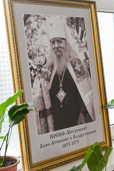 За Литургией возносились заупокойные молитвы о приснопамятных казахстанских иерархах: – архиепископе Софонии (Сокольском, †1877 г.) и епископе Никоне (Богоявленском, †1897 г.), погребенных у алтаря Софийского собора, и подвижнике благочестия митрополите Иосифе (Чернове, †1975 г.), чья гробница находится в Софийском соборе, а также о приснопамятном протоиерее Иоанне Слюсаре – одном из старейших клириков Алма-Атинской епархии, служившем в обители. Накануне, 25 октября, в день памяти священноисповедника Николая, исполнилось семь лет со дня преставления отца Иоанна ко Господу.